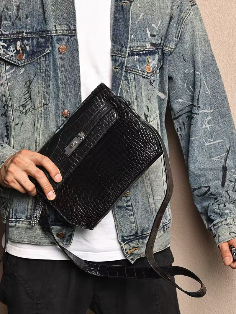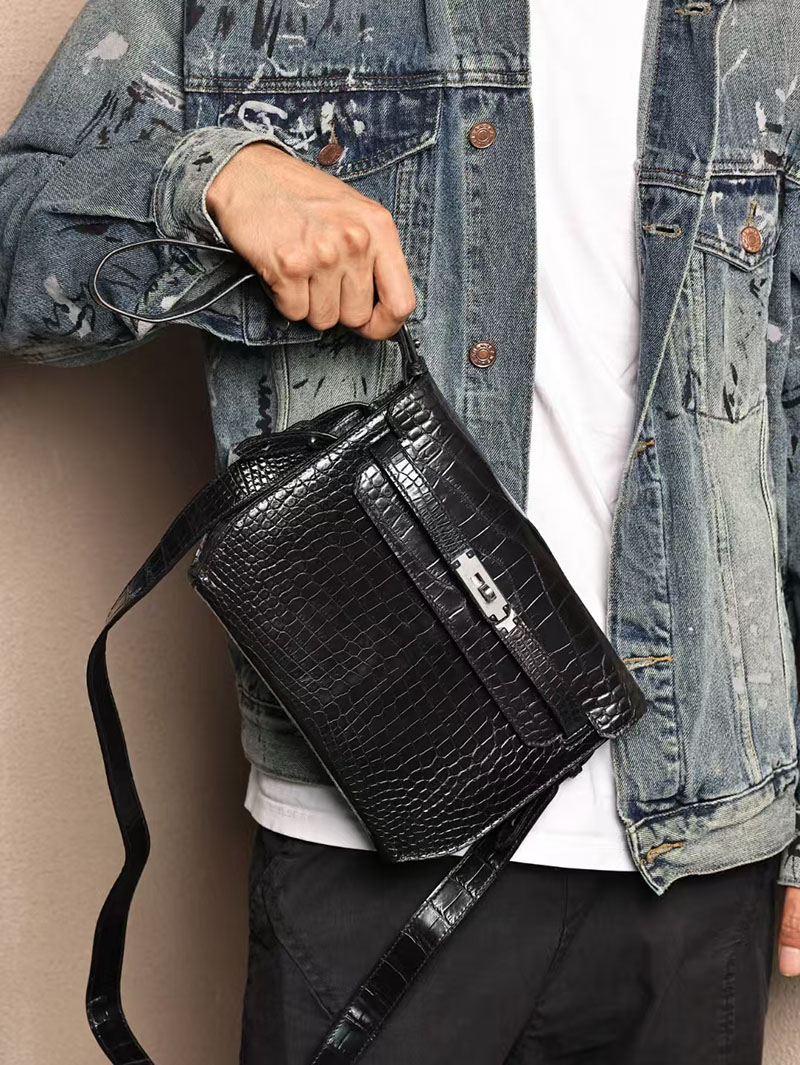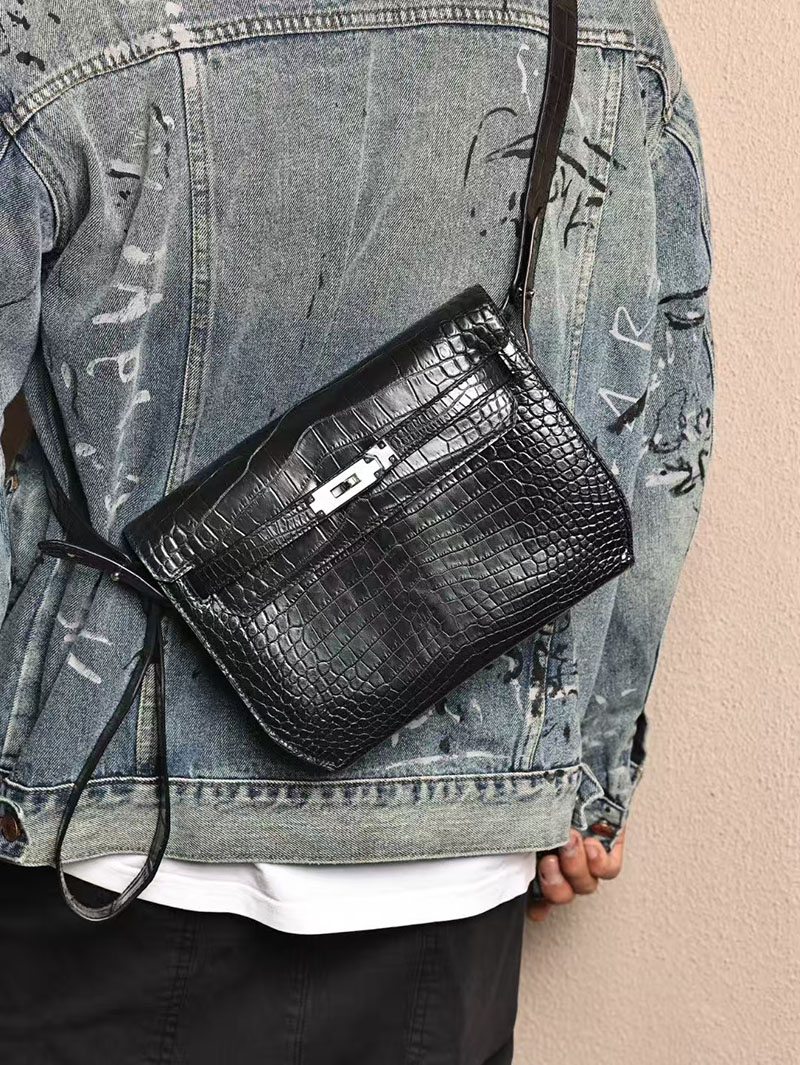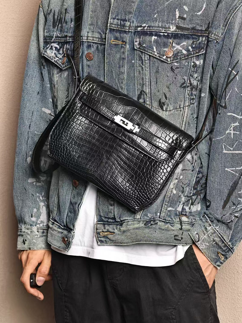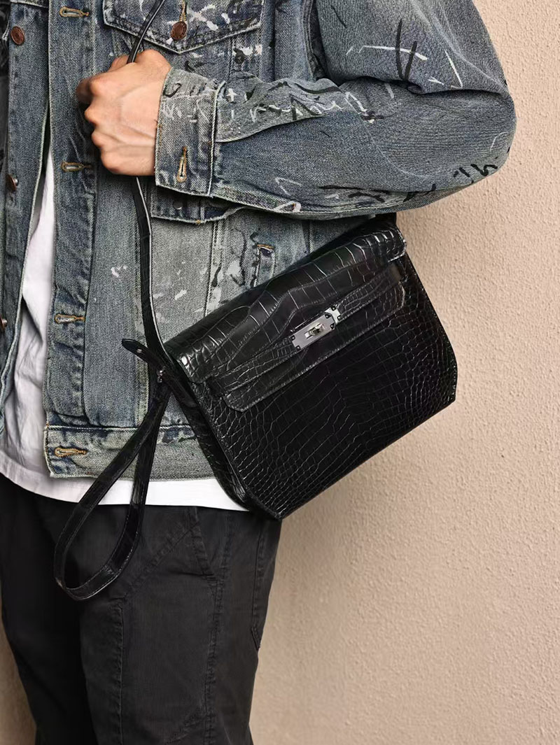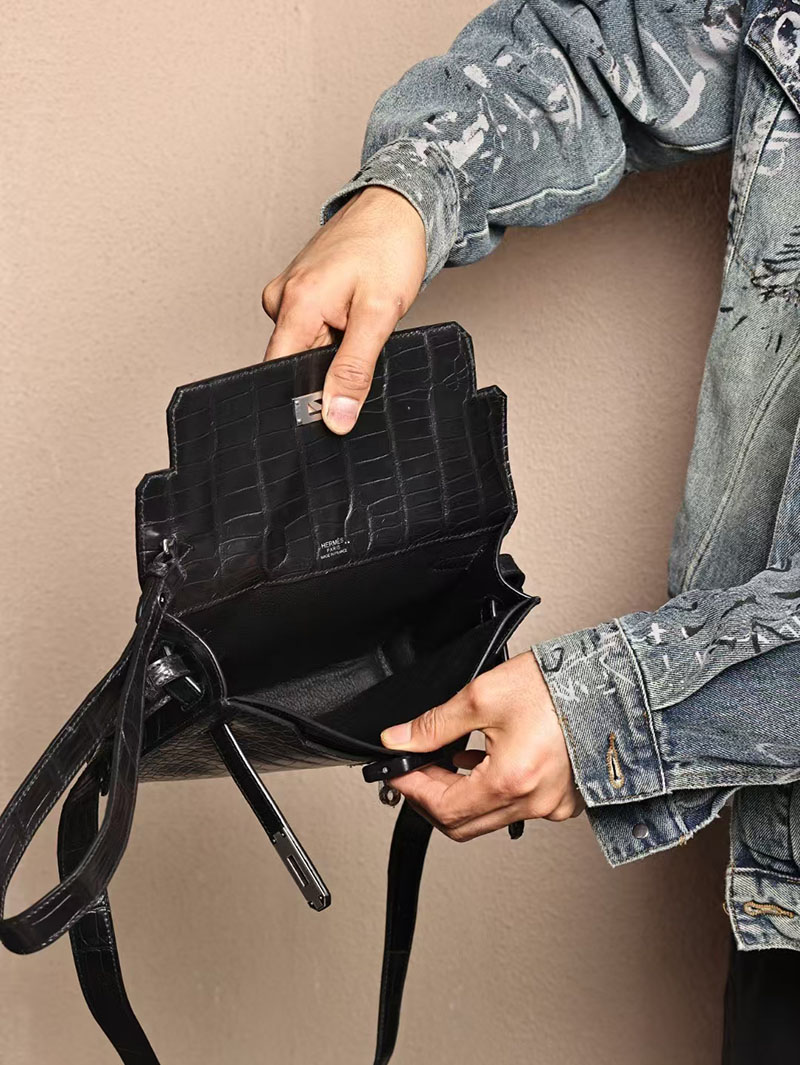 エルメスコピー HERMES ケリーデペッシュ25 黒 ブラック クロコダイル アリゲーターマット シルバー金具 2524072