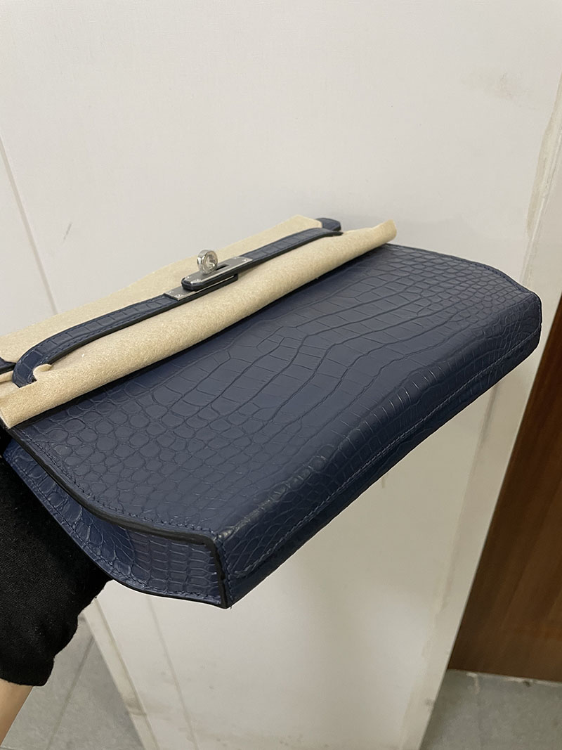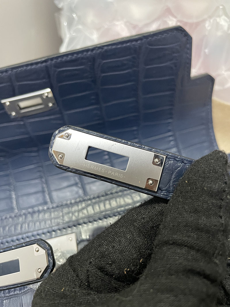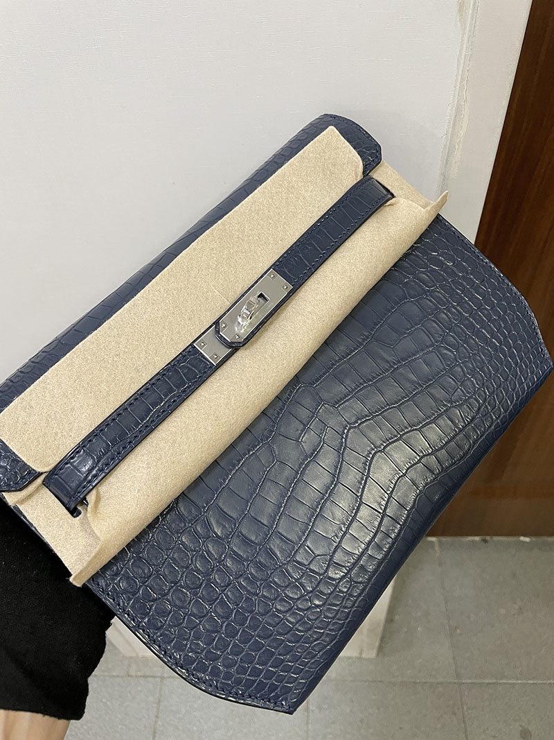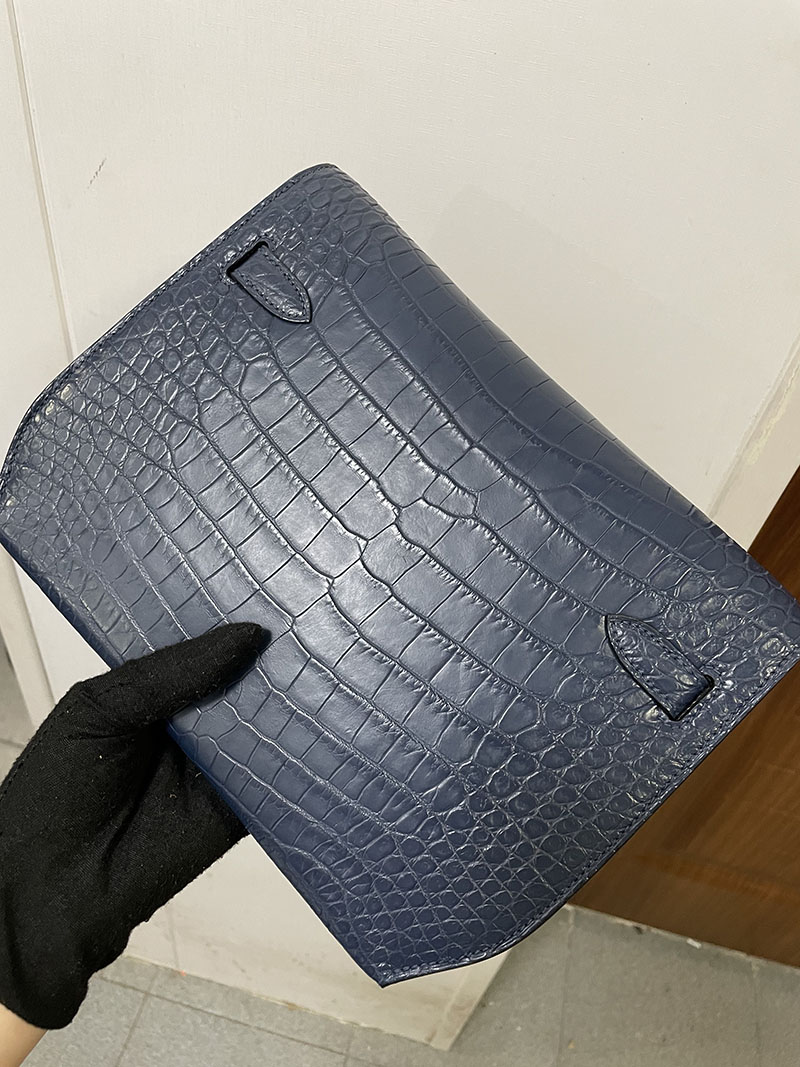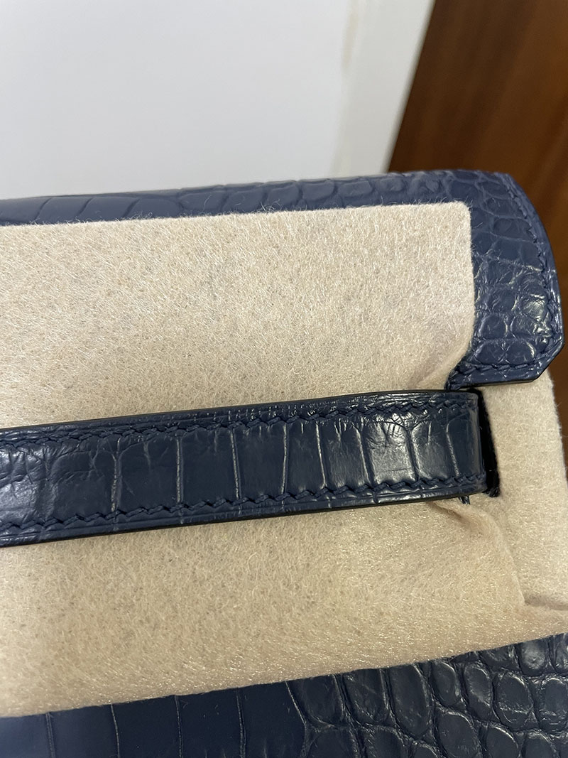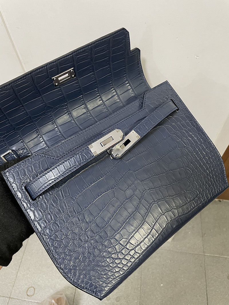 HERMES ケリーデペッシュ25 ブルーインディゴ クロコダイル アリゲーターマット シルバー金具 2526268 ケリーデペッシュ 25 定価