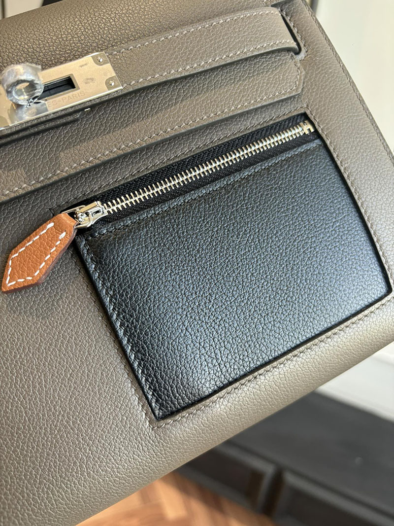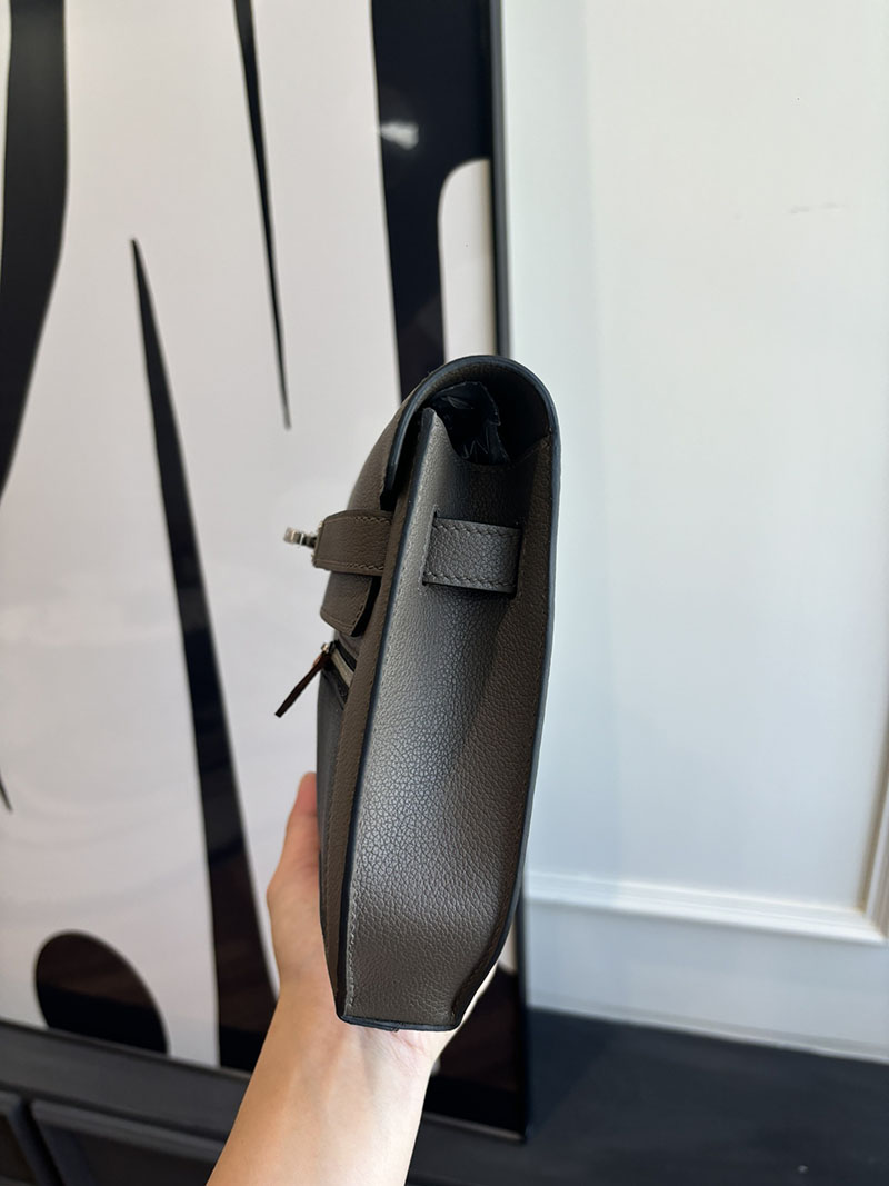 エルメス メンズ バッグ HERMES ケリーデペッシュ25 エタン/黒 ブラック エバーカラー シルバー金具 2526281 ケリーデペッシュ 25 定価