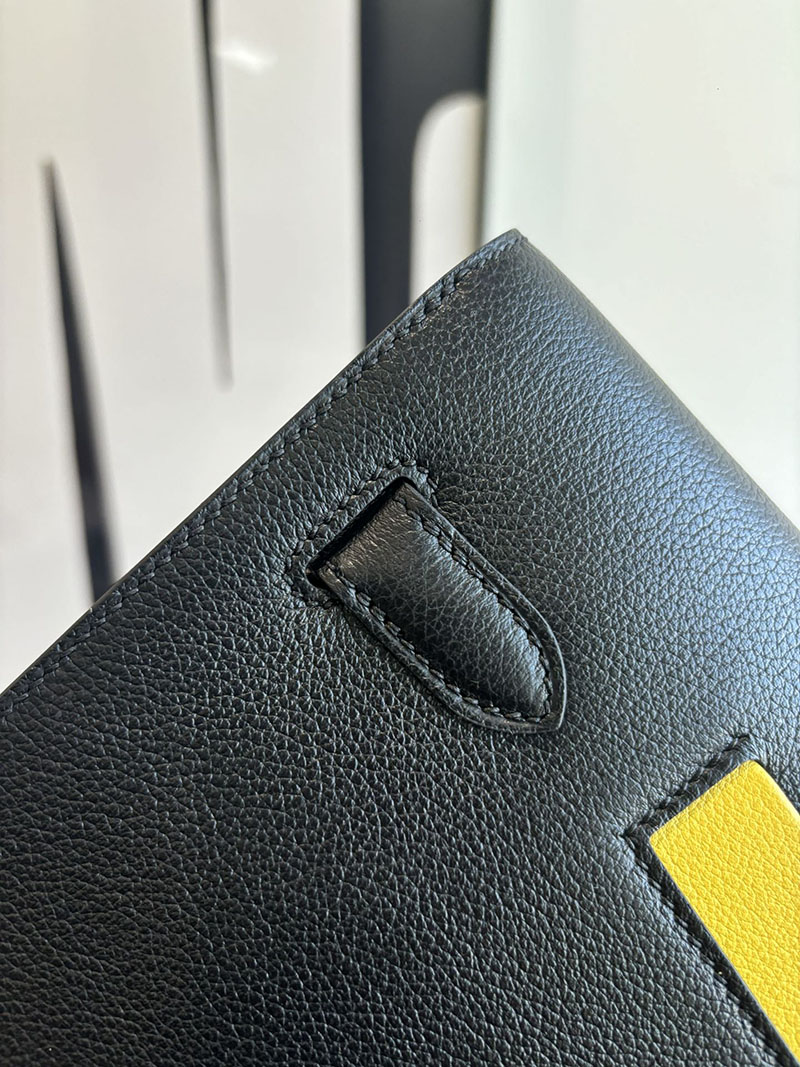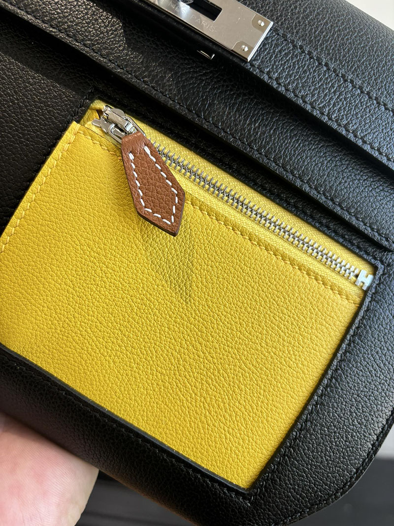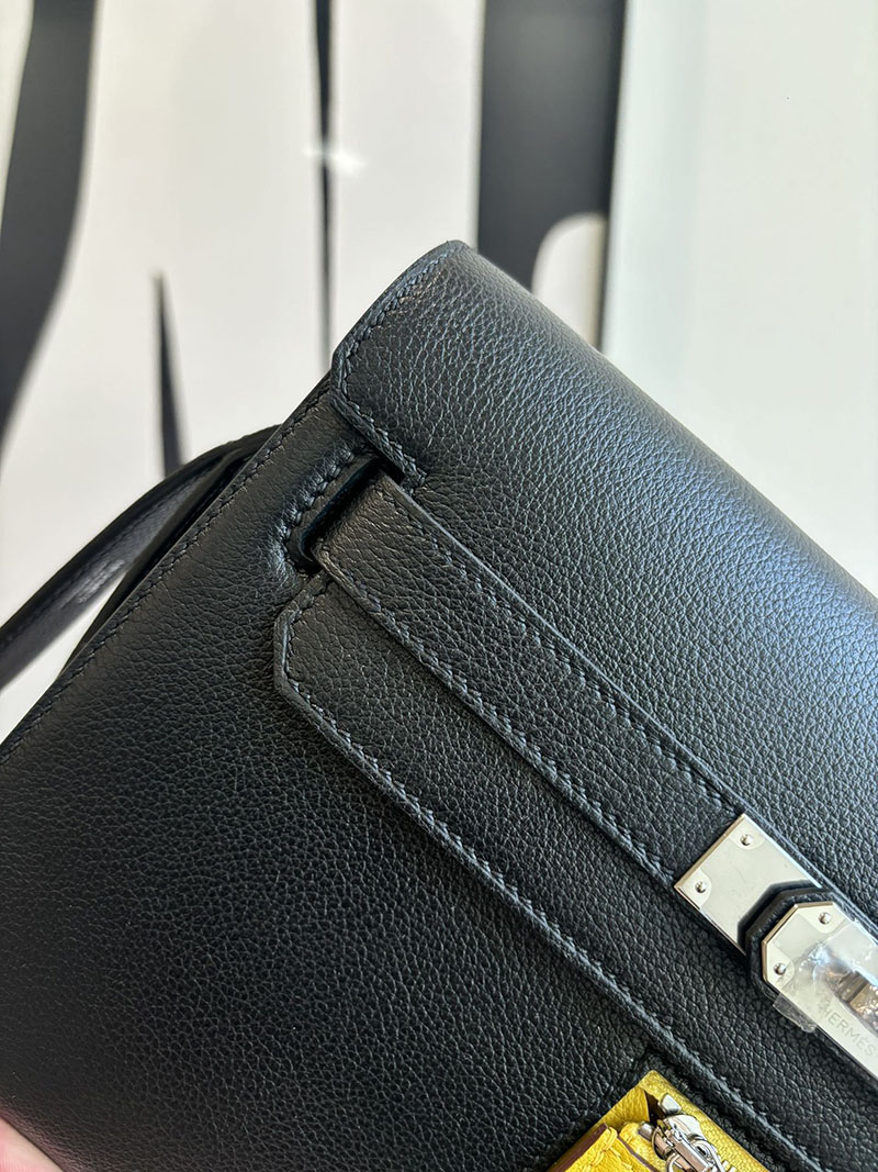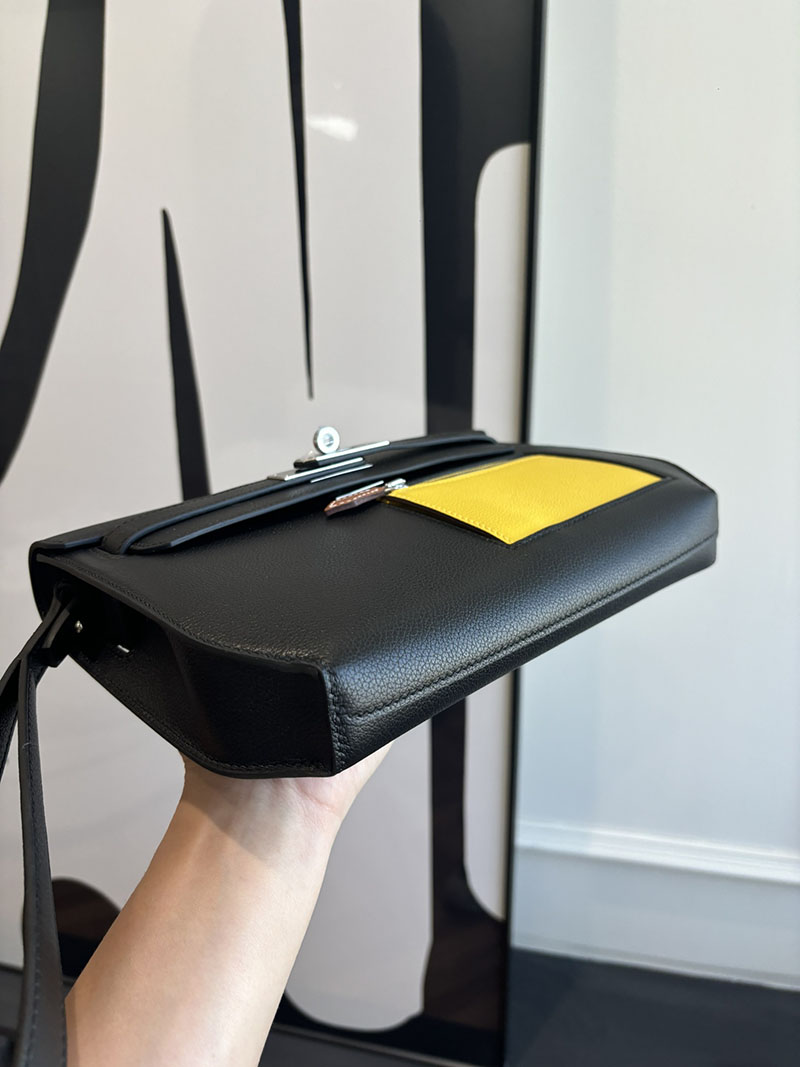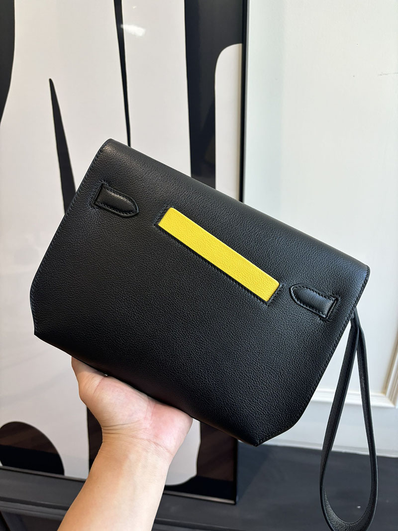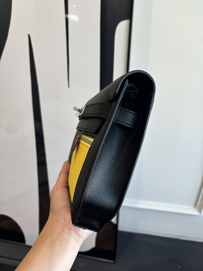エルメス メンズ バッグ HERMES ケリーデペッシュ25 黒 ブラック/ライム エバーカラー シルバー金具 2526282 ケリーデペッシュ クラッチ 定価