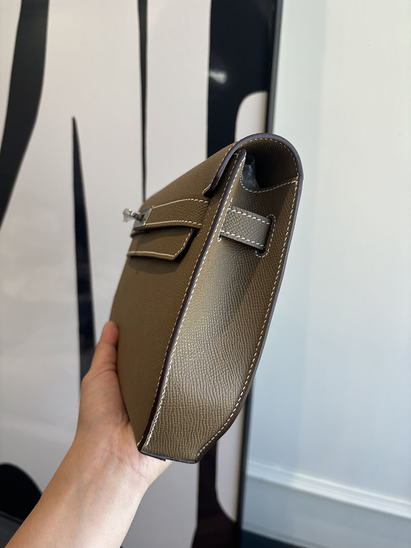 エルメス バッグ 定価 HERMES ケリーデペッシュ25 エトゥープ ヴォーエプソン シルバー金具 2526301 ケリーデペッシュ 定価
