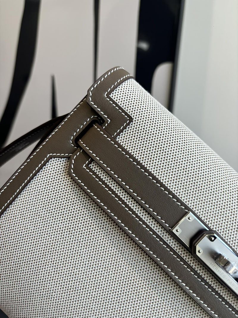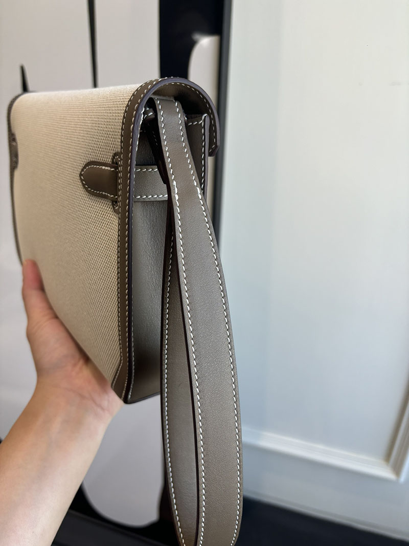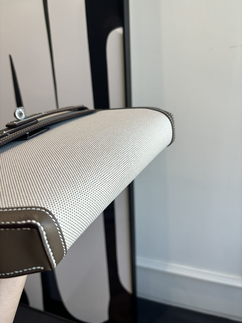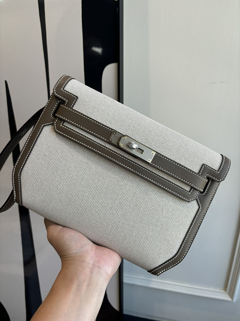 エルメス バッグ 定価 HERMES ケリーデペッシュ25 エトゥープ トワル/スイフト シルバー金具 2526304 ケリーデペッシュ メンズ