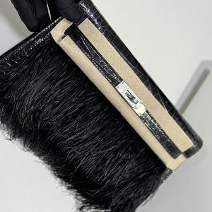HERMES エルメス ケリーエラン フェザー 黒 ブラック クロコダイル アリゲーターマット シルバー金具 2520778 ケリーエラン 定価