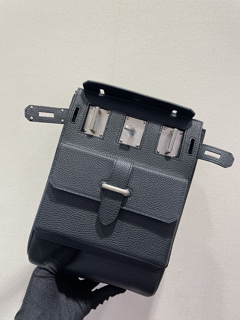 HERMES Hac a Dos PM マルチポケット バックパック 黒 ブラック トゴ シルバー金具 2526250 ケリーアッカド マルチポケット