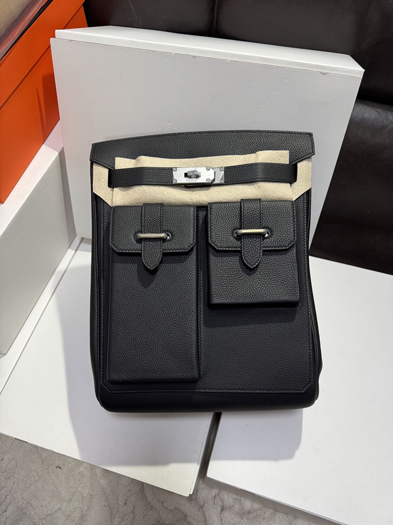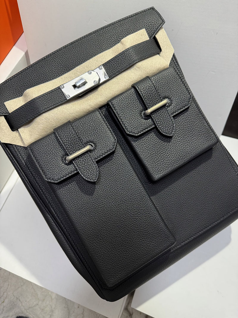 HERMES アッカド マルチポケット バックパック 黒 ブラック トゴ シルバー金具 2526276 ケリーアッカド マルチポケット