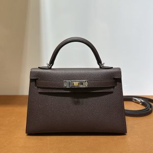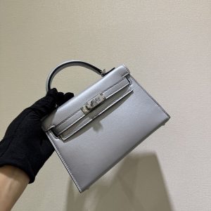エルメス ケリーミニ 20 外縫い モーヴシルベストル シェブルミゾル シルバー金具 2412870 手提げバッグ 小さめおしゃれ