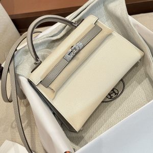 エルメス HERMES ケリーミニ 20 外縫い パールグレー オーストリッチ ゴールド金具 2412920 ミニバッグ ブランド お手頃