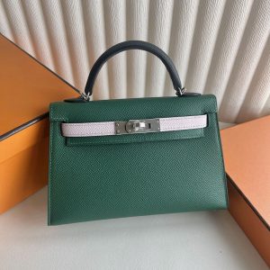 エルメスコピー ミニケリー 定価 HERMES ケリーミニ2 外縫い ライム シェブルミゾル シルバー金具 2524061