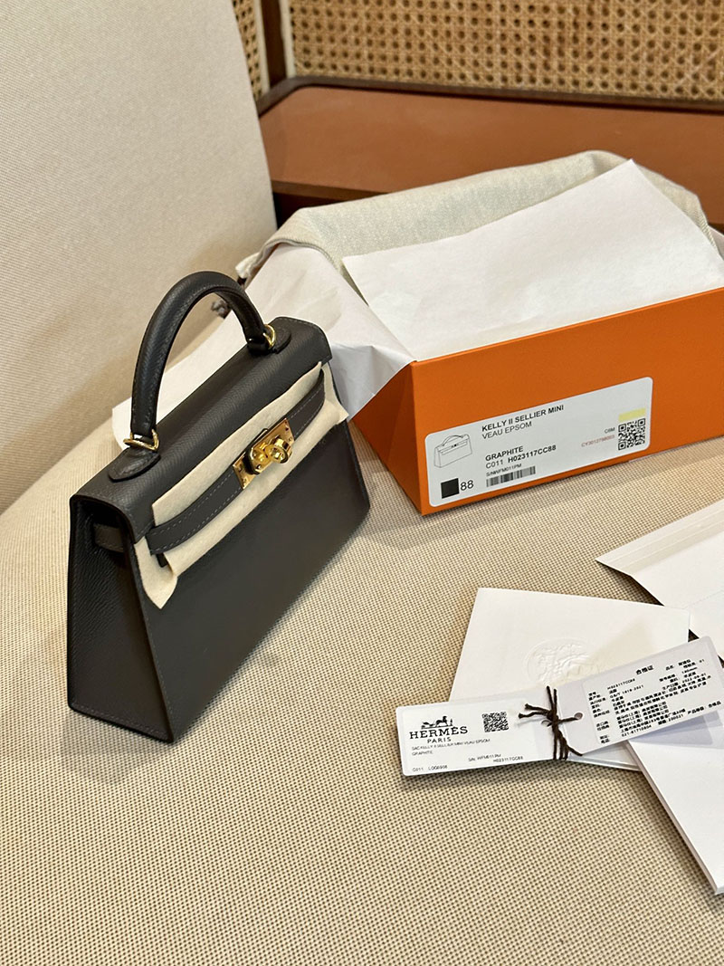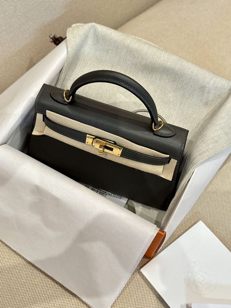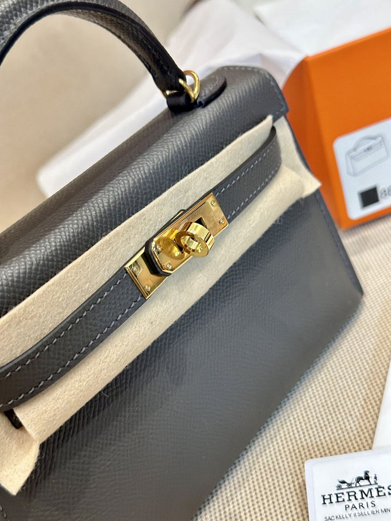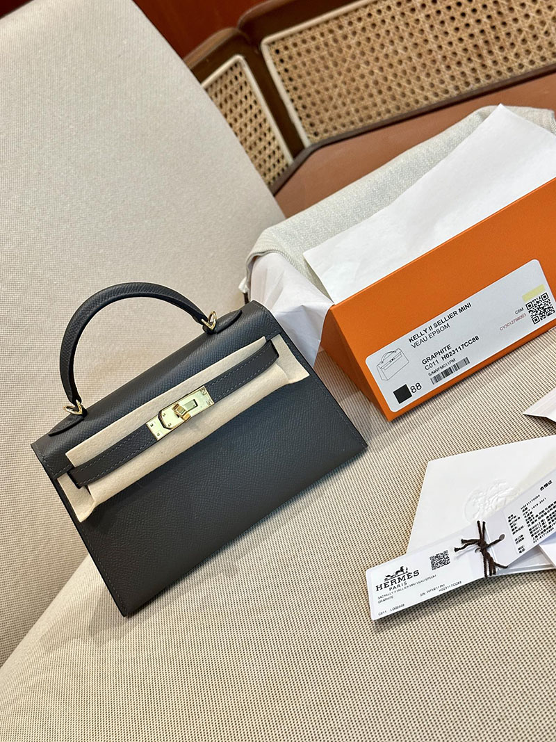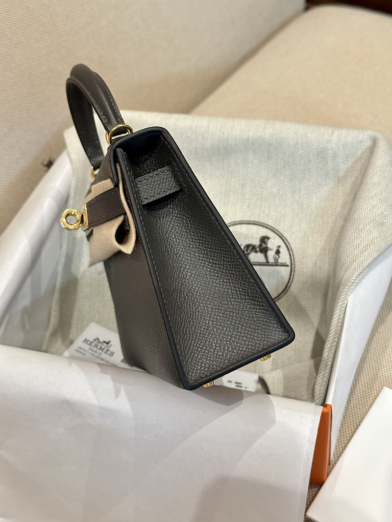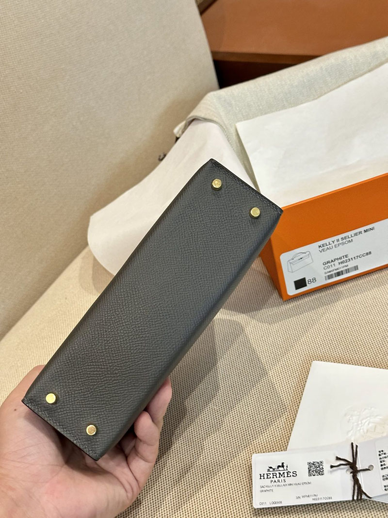 ミニケリー 容量 エルメス ケリーミニ 20 外縫い グラファイト ヴォーエプソン ゴールド金具 2412849