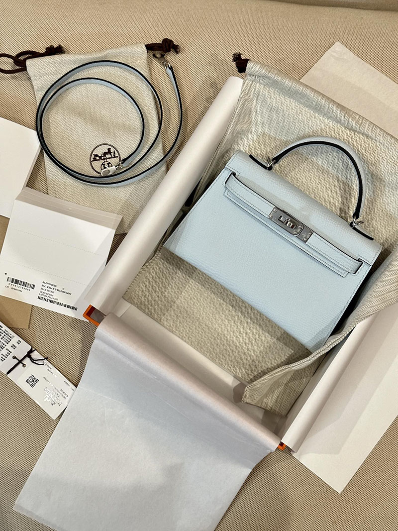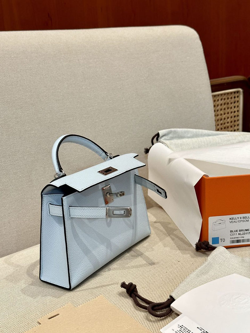 エルメス アウトレット 店舗 HERMES ケリーミニ2 外縫い ブルーブリュム ヴォーエプソン シルバー金具 2520850 ミニケリー ミニケリー2