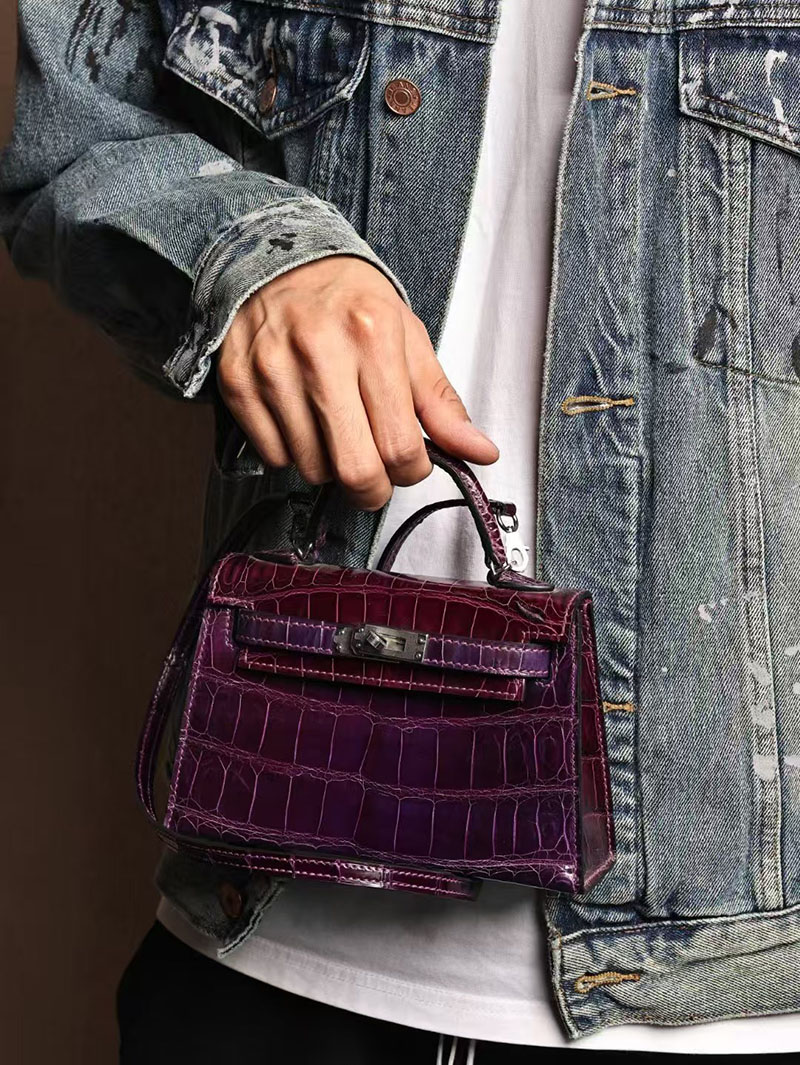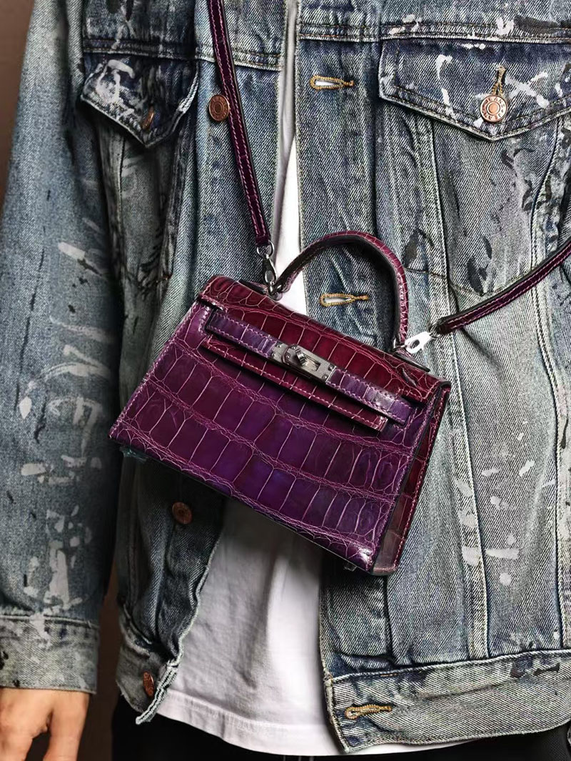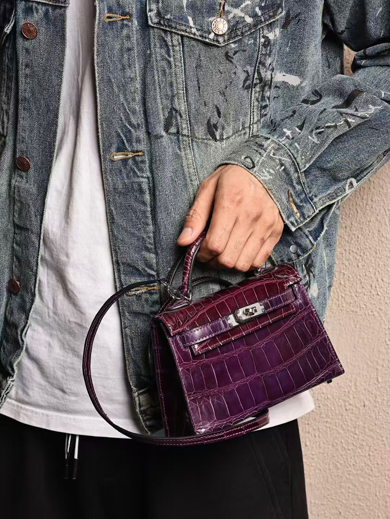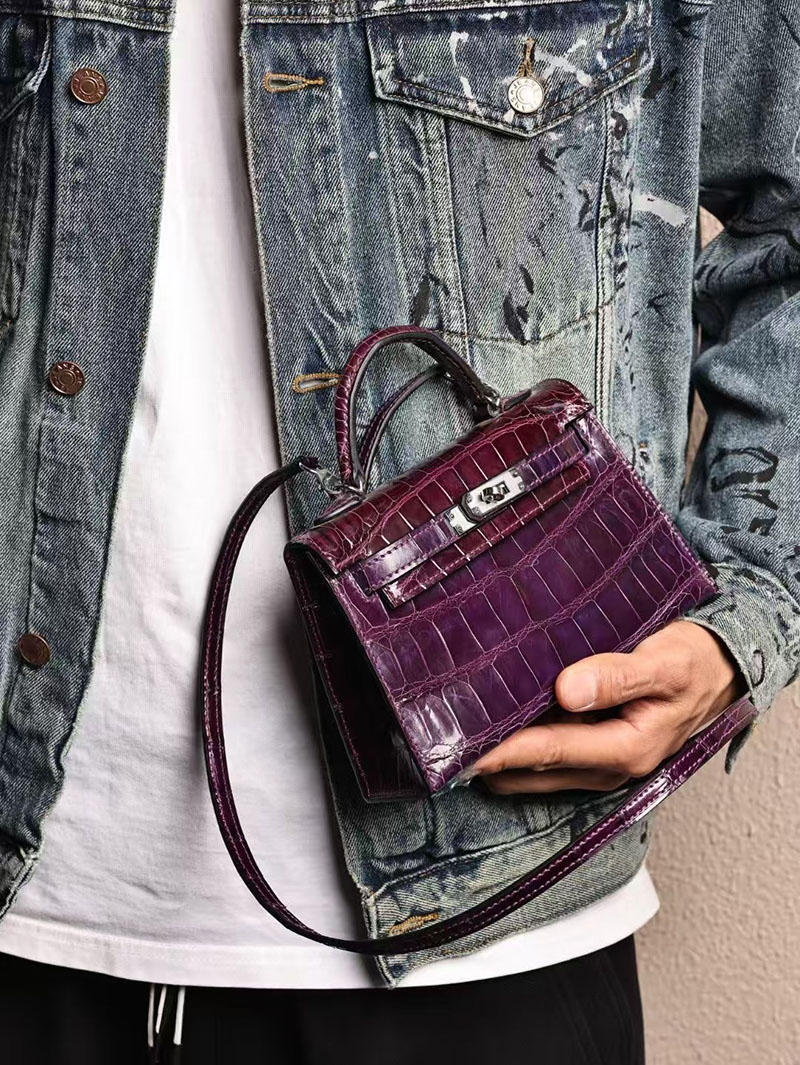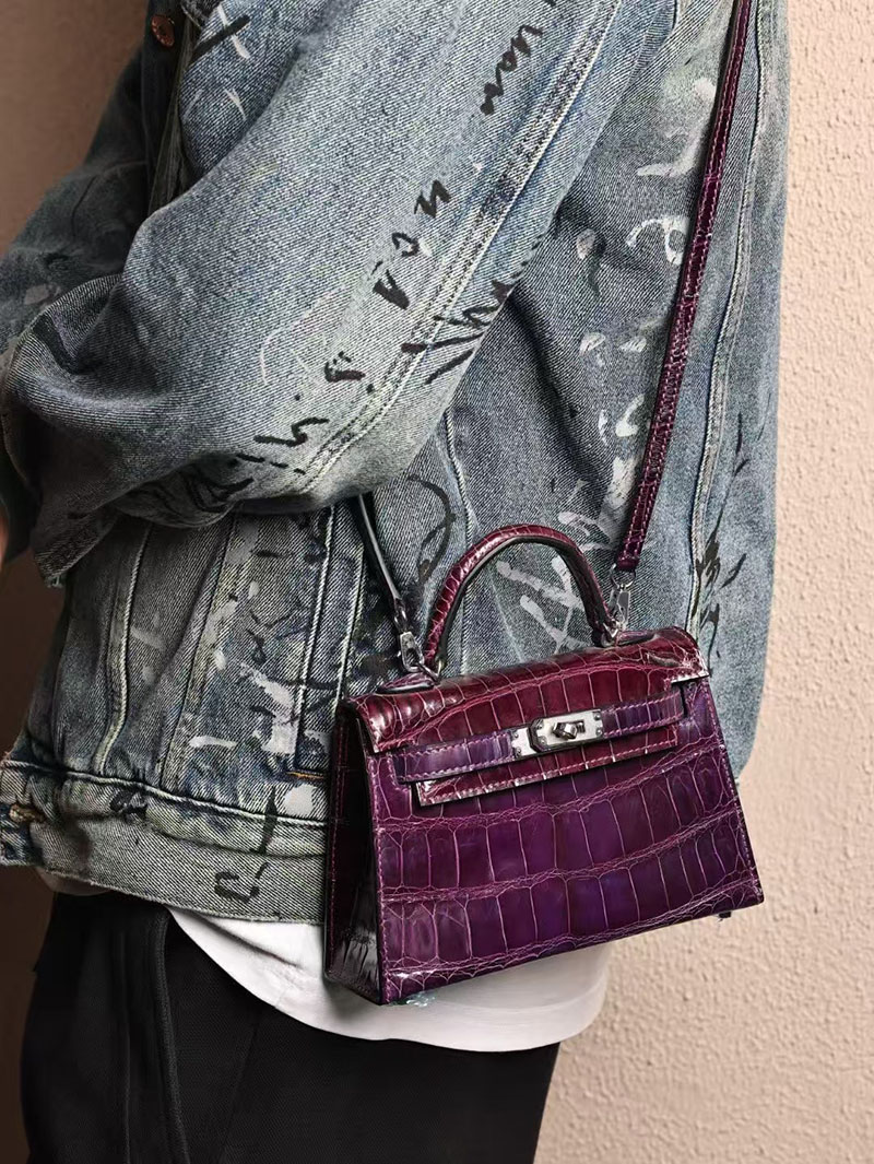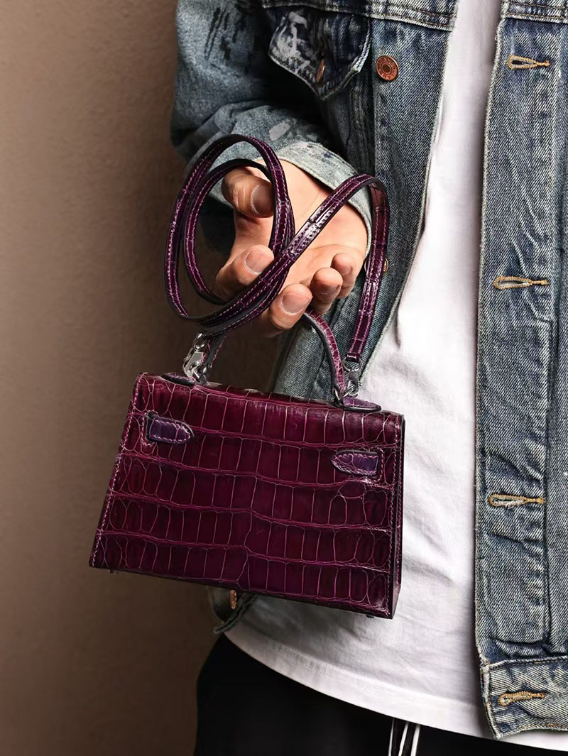 エルメスコピー ミニケリー 定価 HERMES ケリーミニ2 外縫い レザン クロコダイル ポロサスマット シルバー金具 2524050
