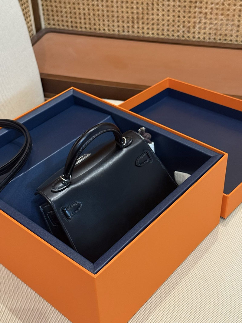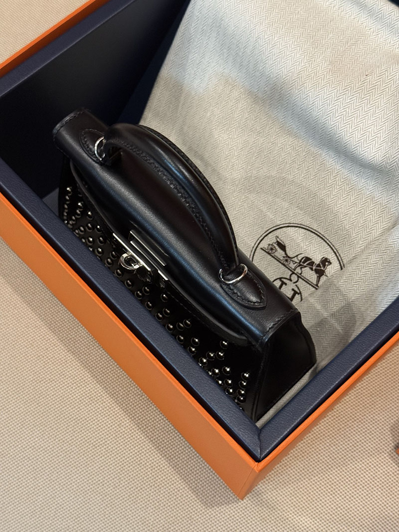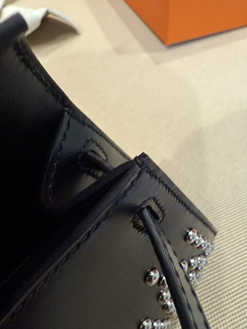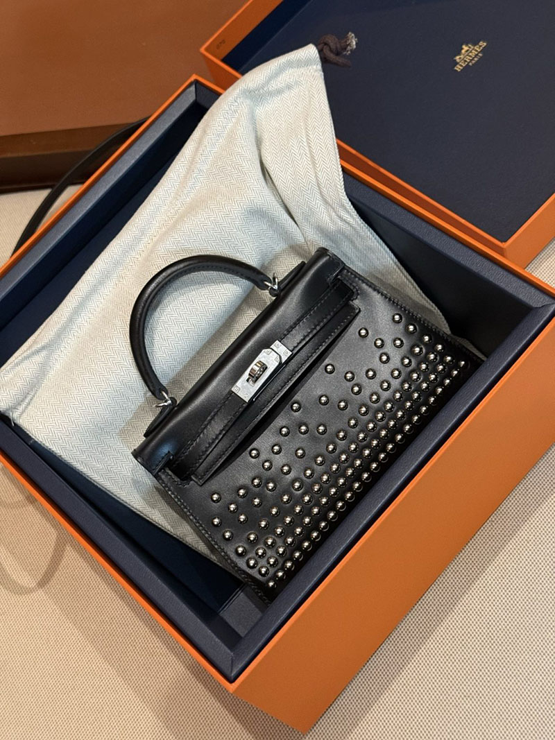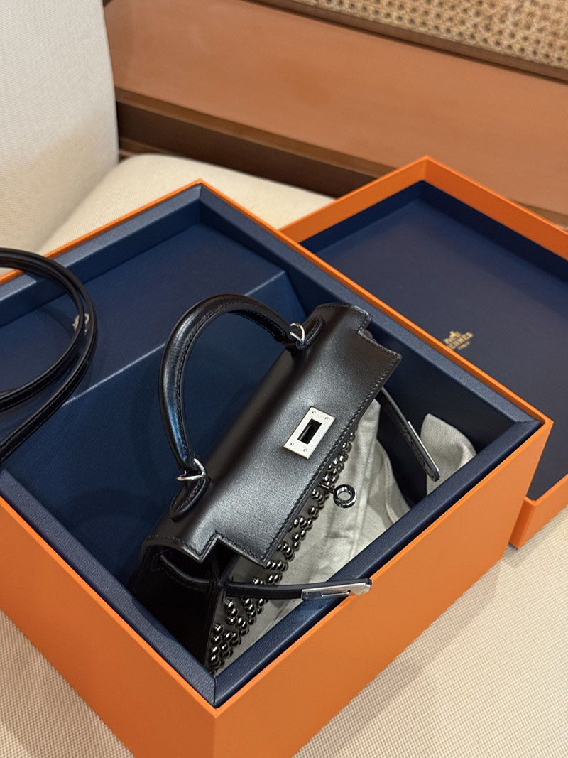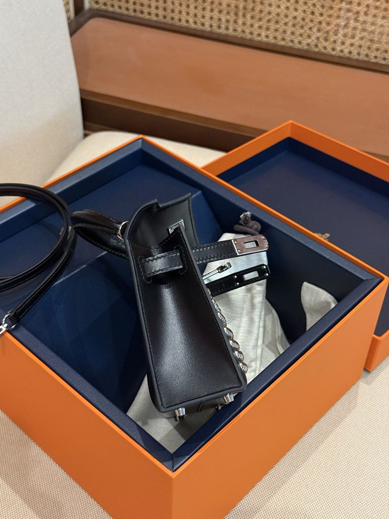 エルメスコピー ミニケリー 定価 HERMES ケリーミニ2 ミニドゥ 外縫い ブラック ボックスカーフ シルバー金具 2524079
