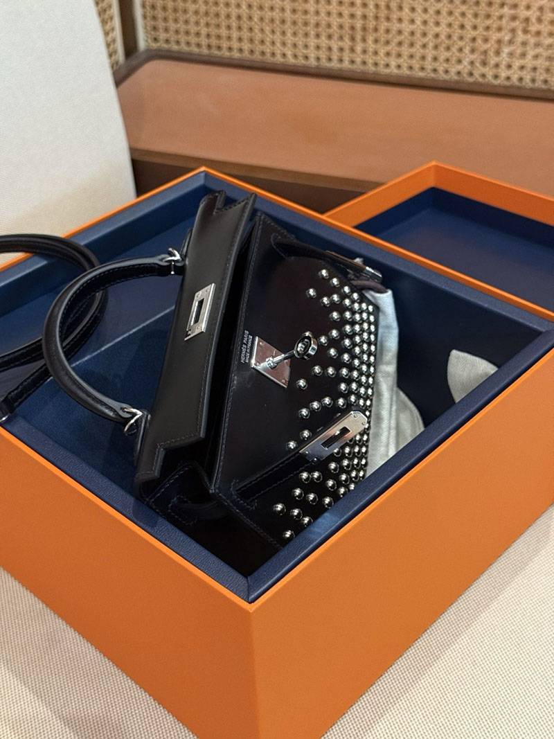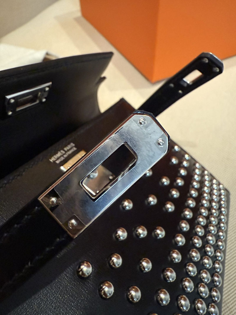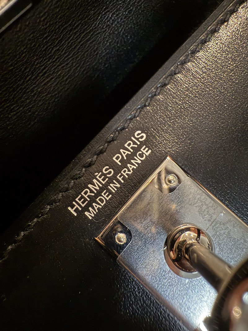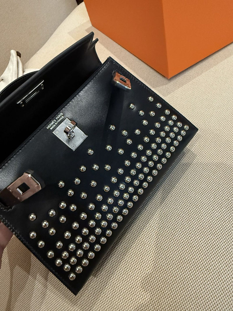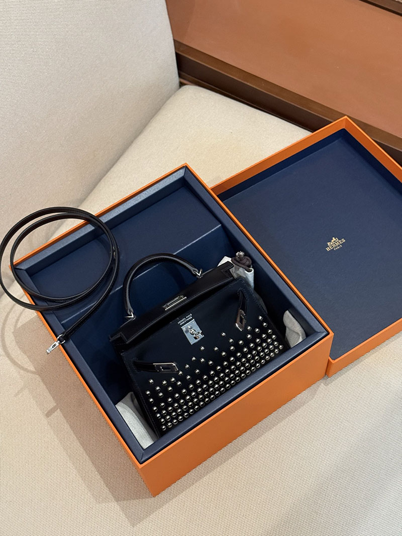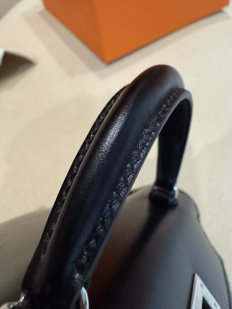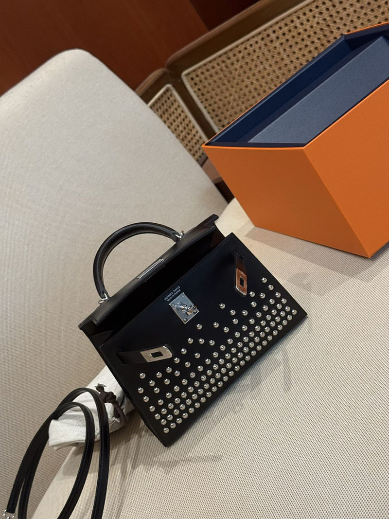 エルメスコピー ミニケリー 定価 HERMES ケリーミニ2 ミニドゥ 外縫い ブラック ボックスカーフ シルバー金具 2524079