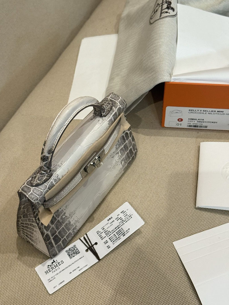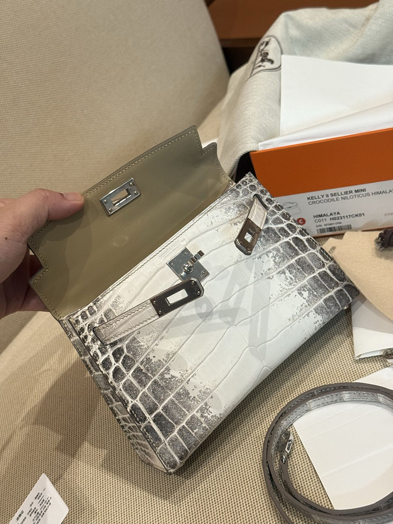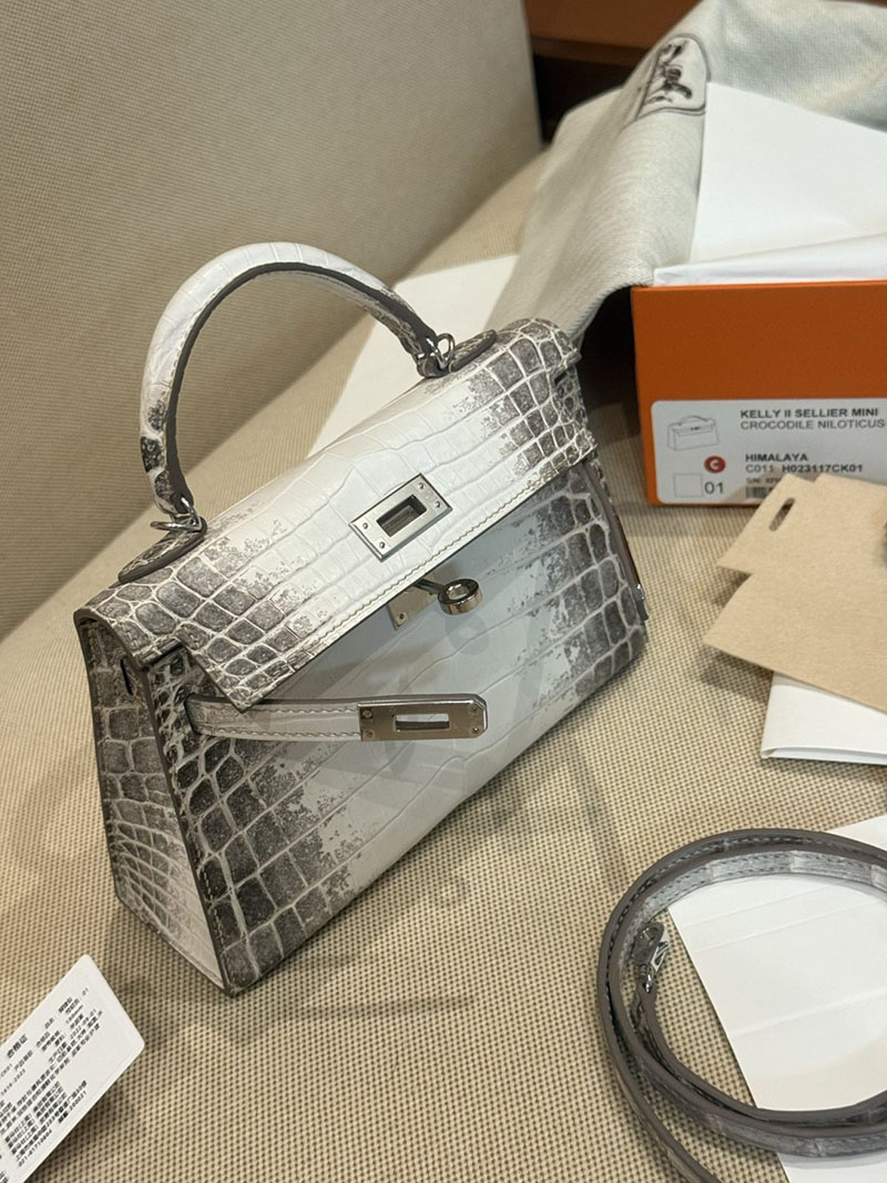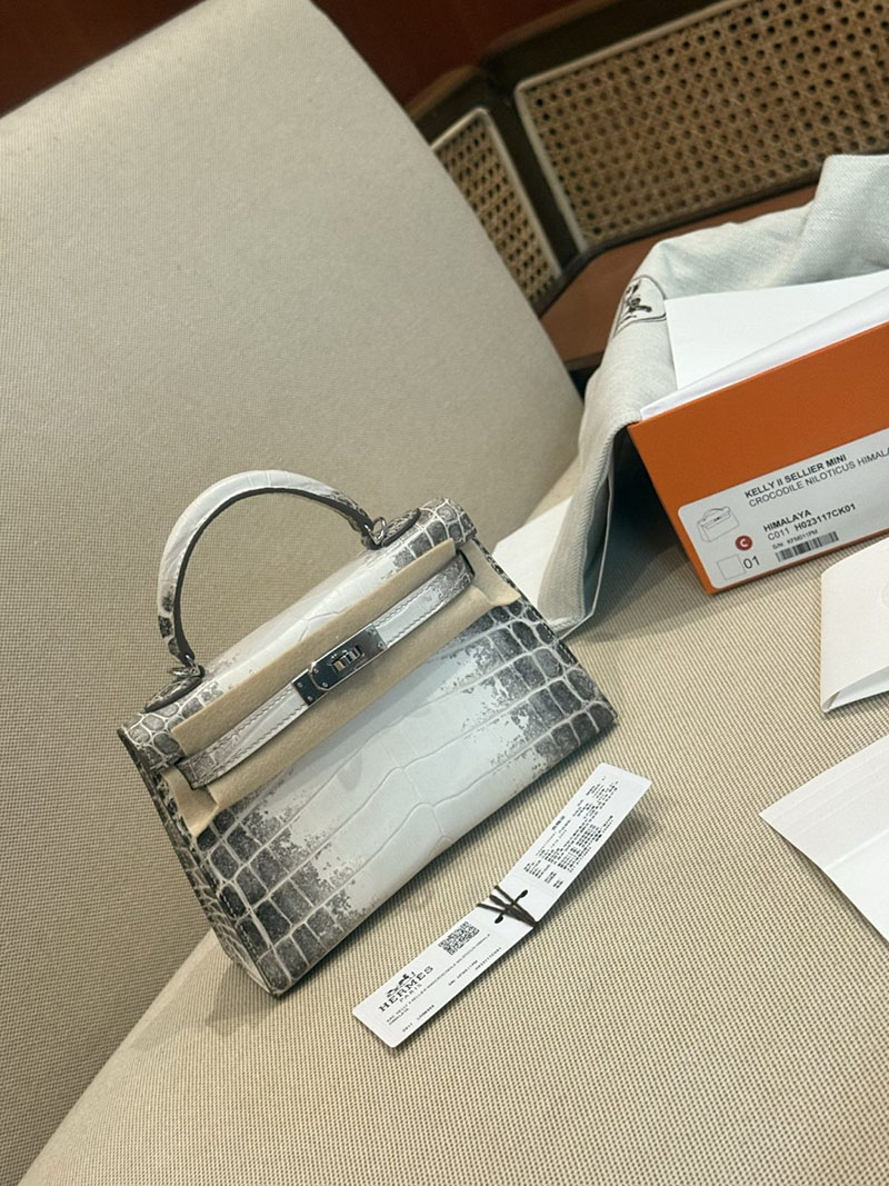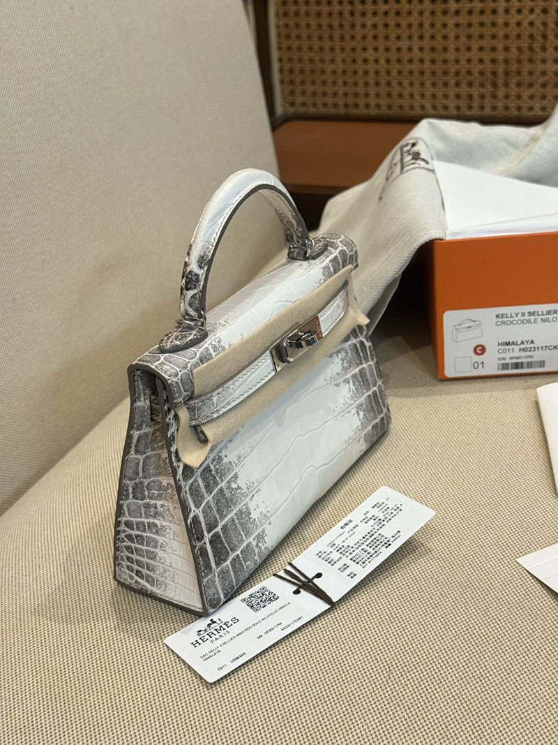エルメスコピー ミニケリー 定価 HERMES ケリーミニ2 外縫い ヒマラヤ クロコダイル ニロティカスマット シルバー金具 2524199