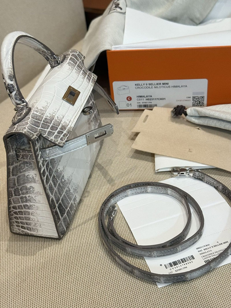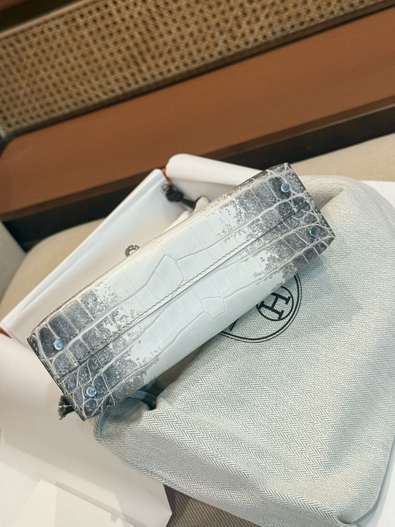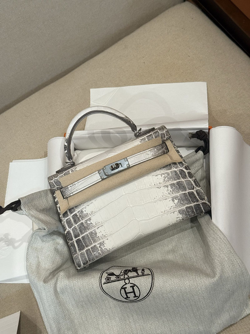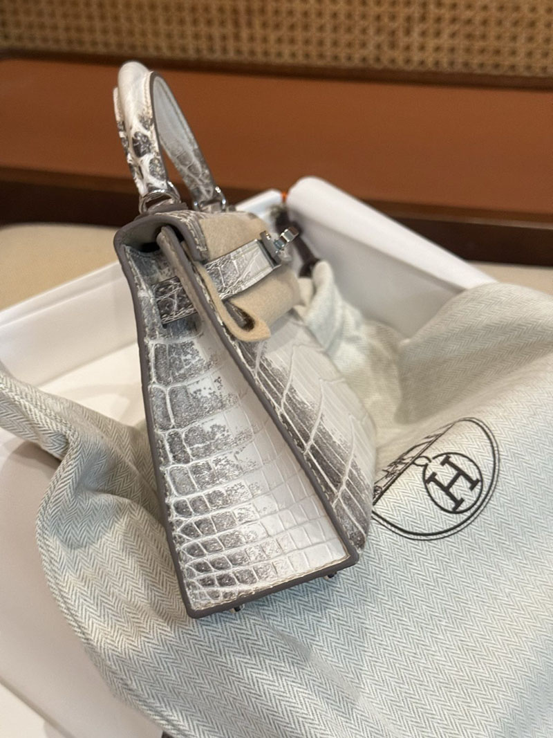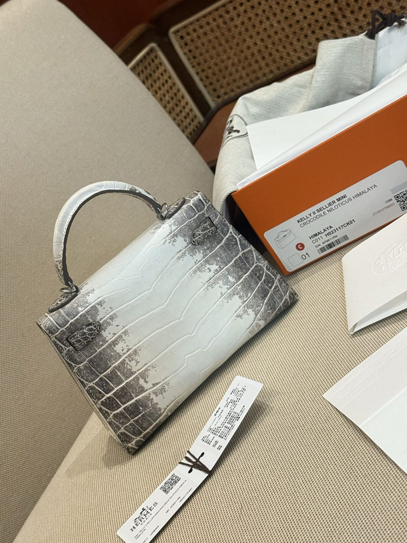 エルメスコピー ミニケリー 定価 HERMES ケリーミニ2 外縫い ヒマラヤ クロコダイル ニロティカスマット シルバー金具 2524199