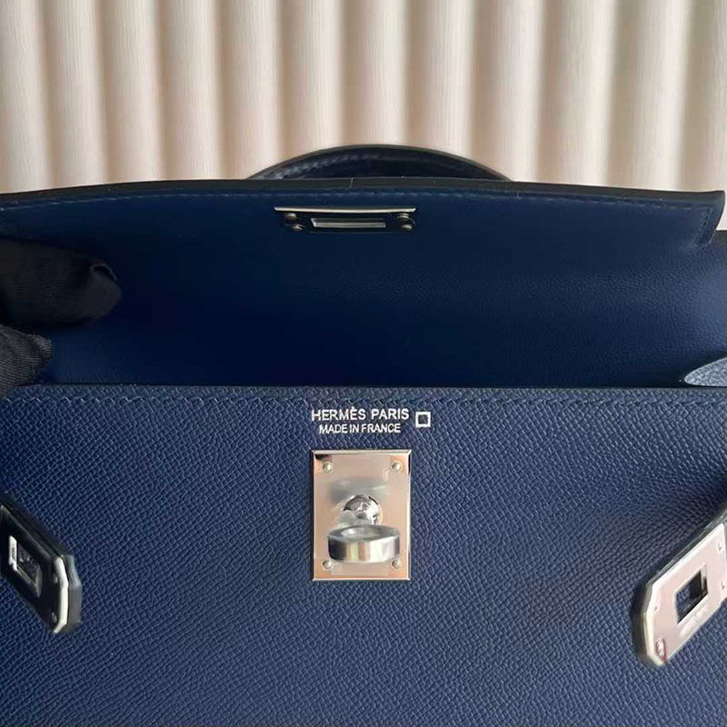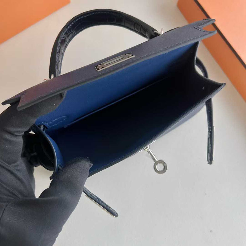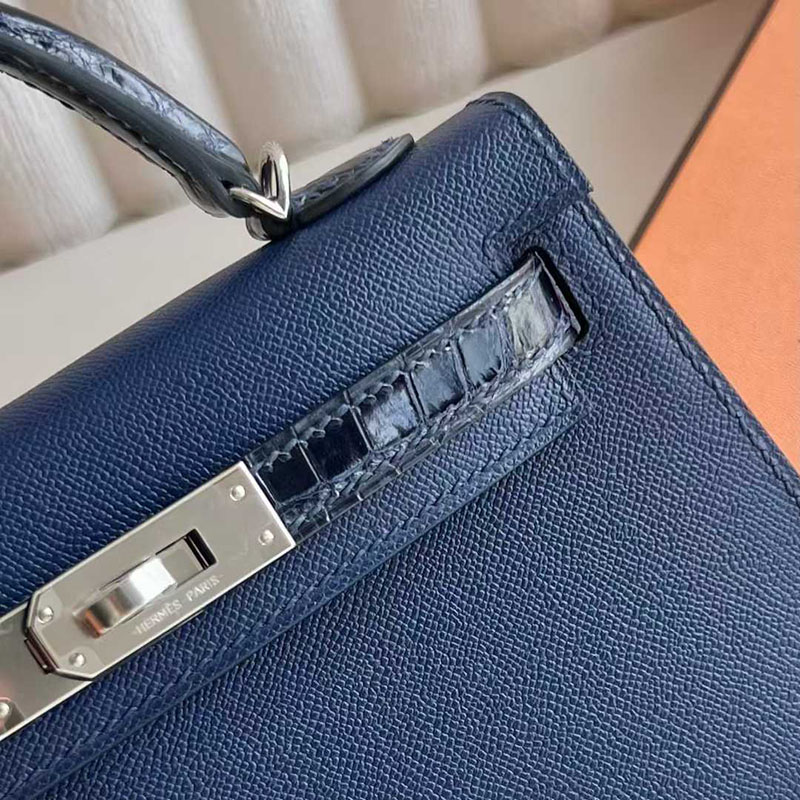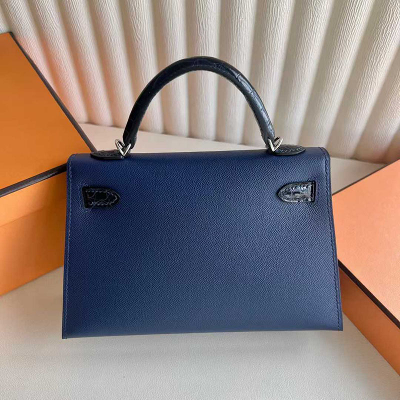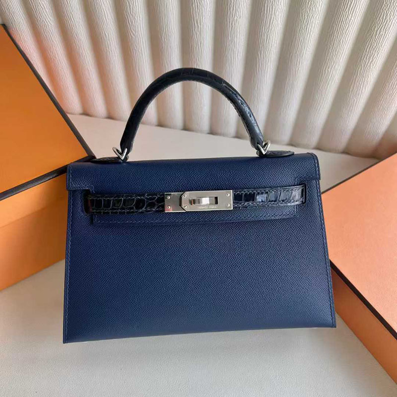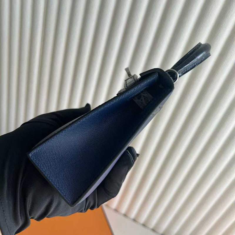 エルメス ミニケリー HERMES ケリーミニ2 外縫い ブルーサフィール/クロ ヴォーエプソン/クロコ シルバー金具 26210446 エルメス 新作バッグ
