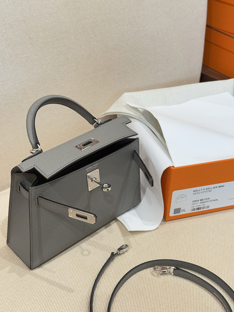 ショルダーバッグ 小さめ おしゃれ HERMES ケリーミニ2 外縫い グリメイヤー ヴォーエプソン シルバー金具 2627519 エルメス専門店