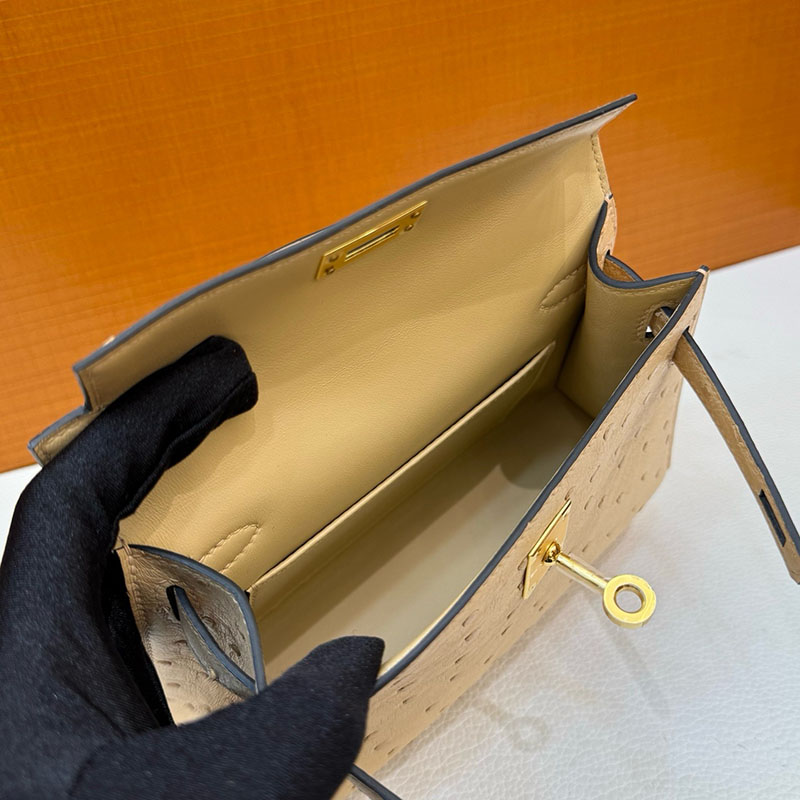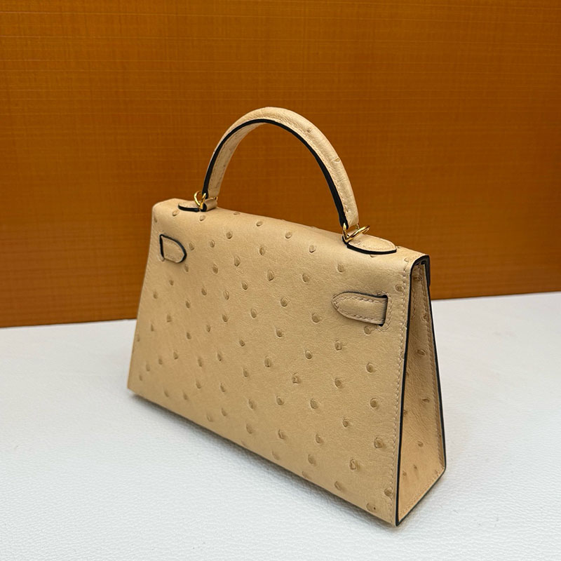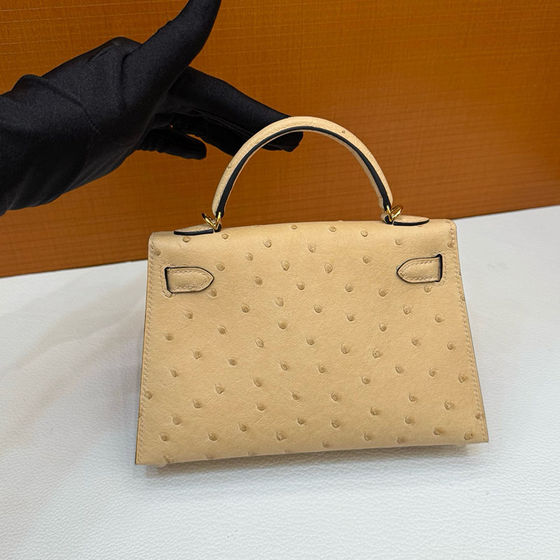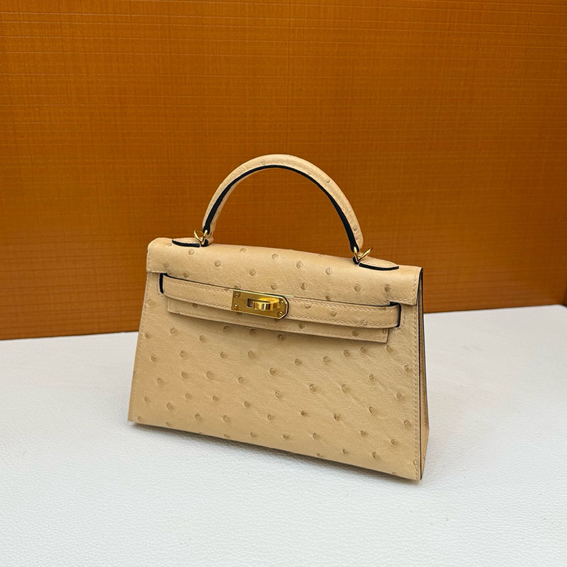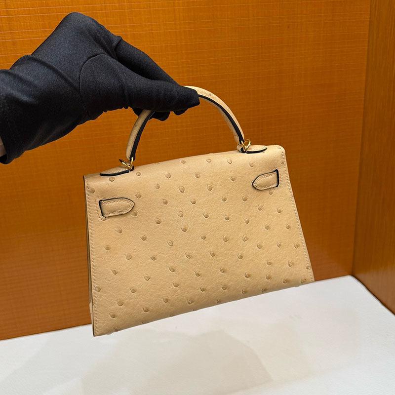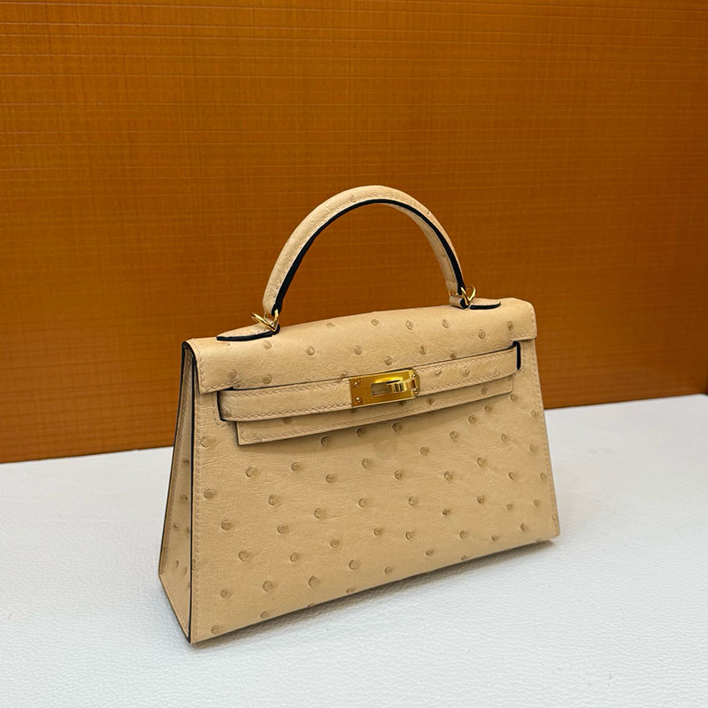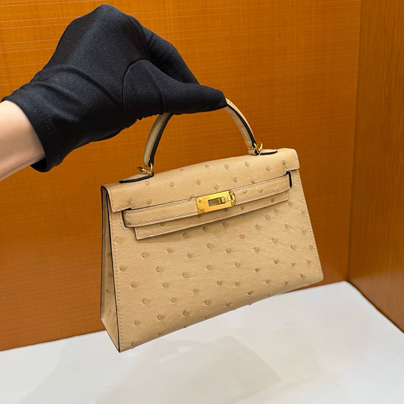 エルメス オーストリッチ バッグ HERMES ケリーミニ2 外縫い ムース オーストリッチ ゴールド金具 2627793 エルメス 新作バッグ