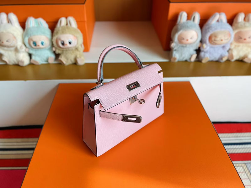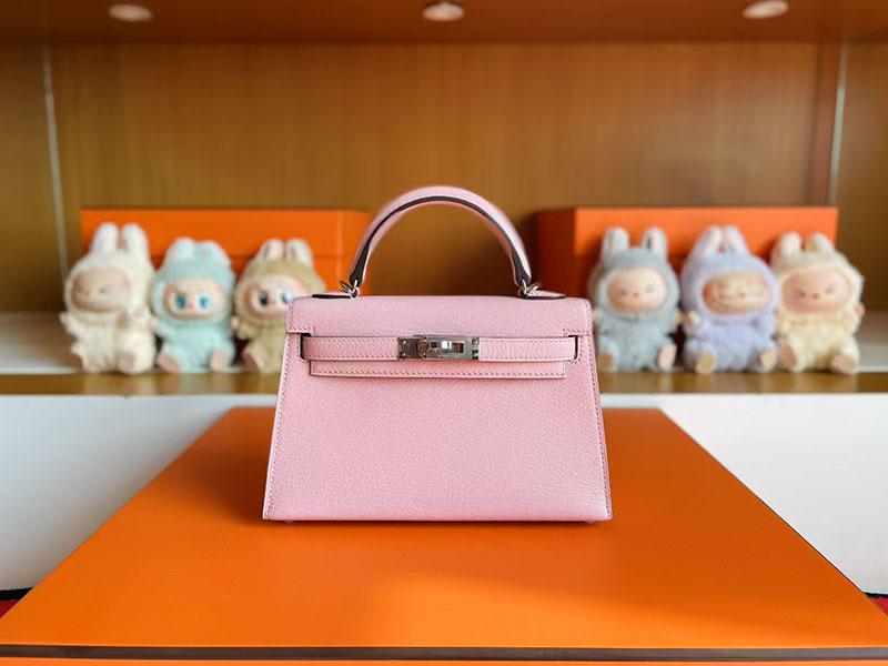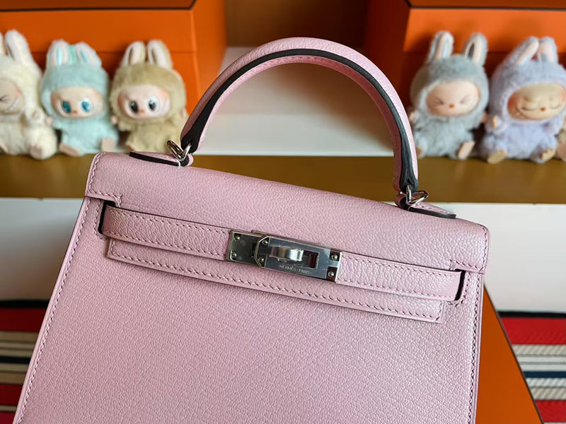 手提げバッグ 小さめ ブランド HERMES ケリーミニ2 外縫い ローズサクラ シェブルミゾル シルバー金具 2627810 エルメス 新作バッグ
