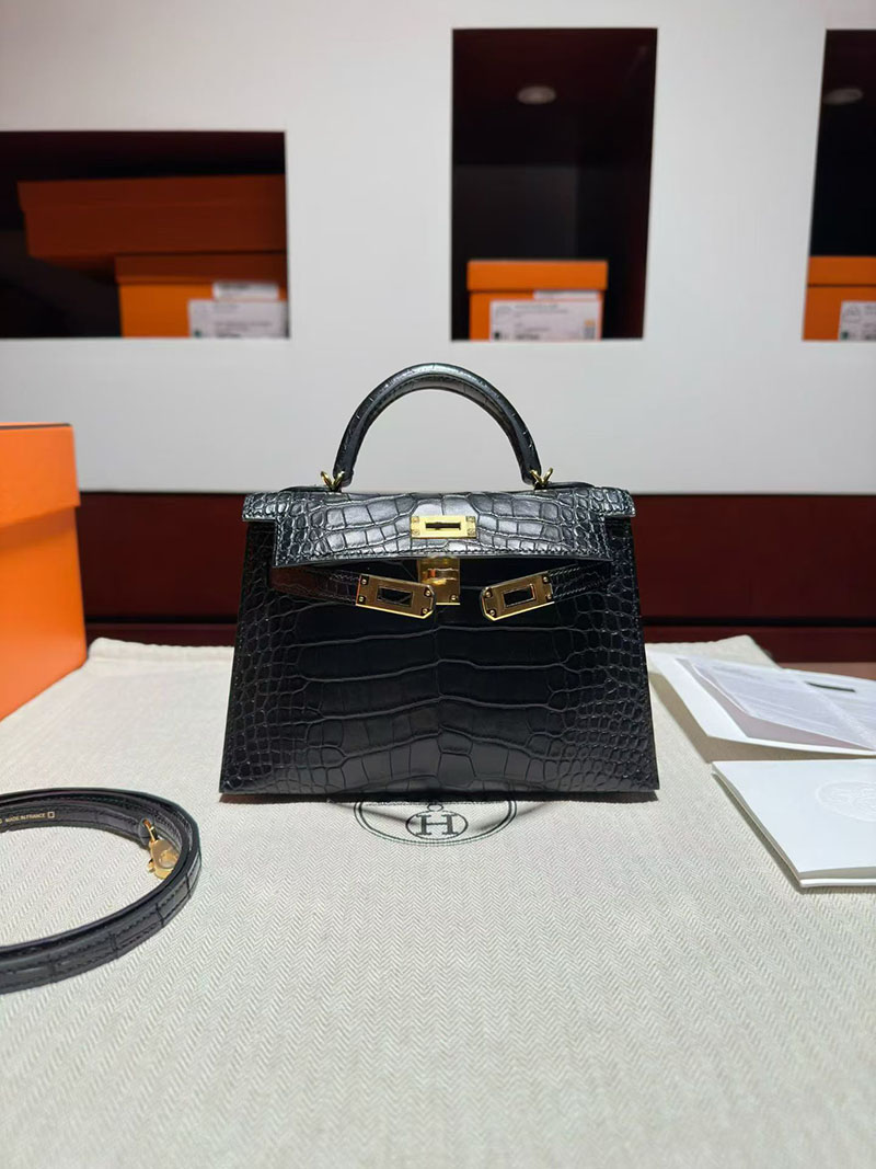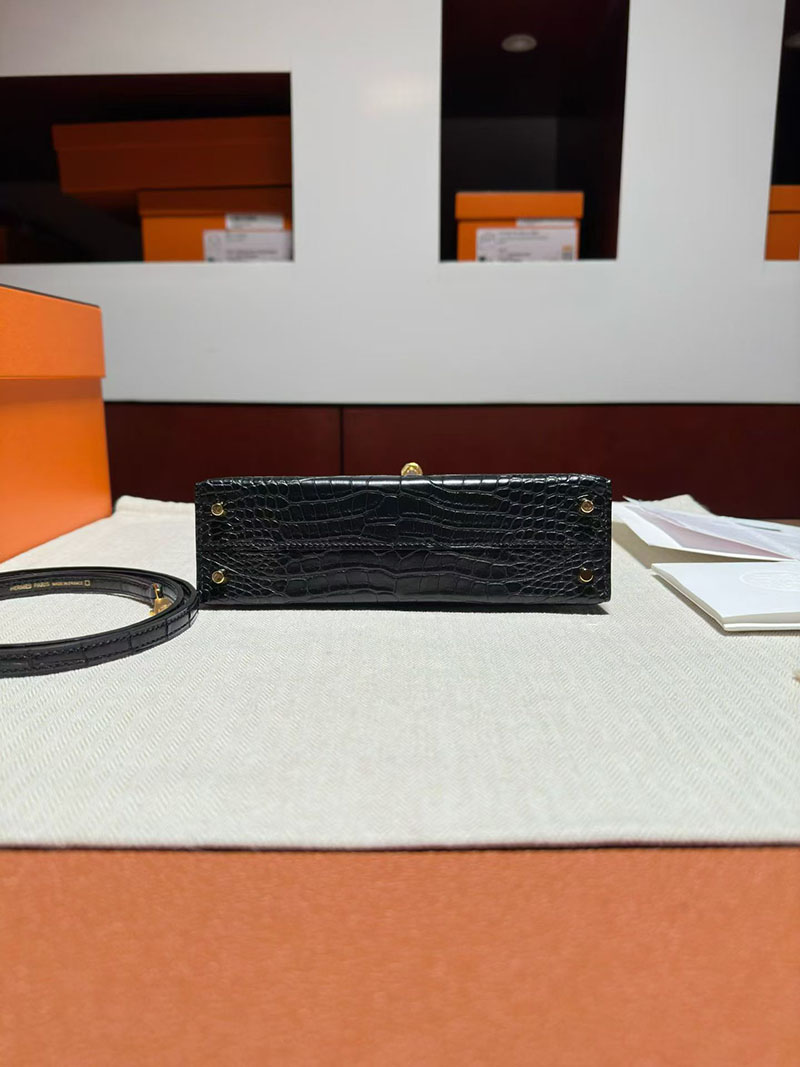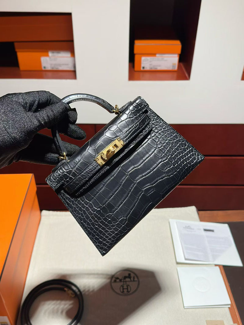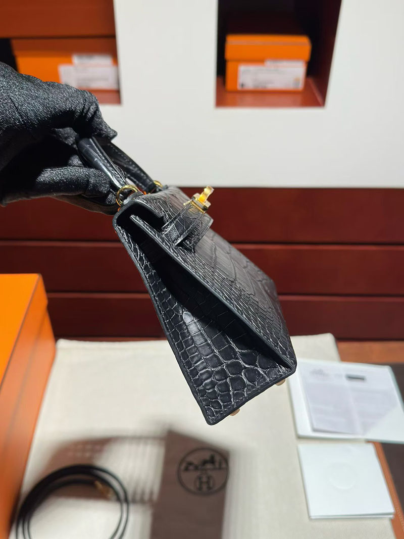ミニケリー クロコ 定価 エルメス ケリーミニ2 HERMES ケリーミニ2 外縫い 黒 ブラック クロコダイル ゴールド金具 2627869 エルメス 新作バッグ