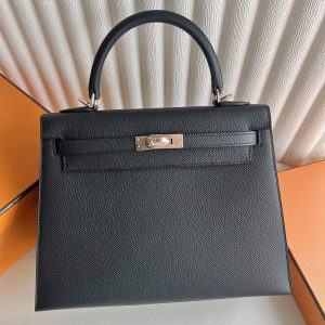 並行輸入品 HERMES ケリー25 外縫い 黒 ブラック ヴォーエプソン ローズゴールド金具 2521299 レディース エルメス バッグ