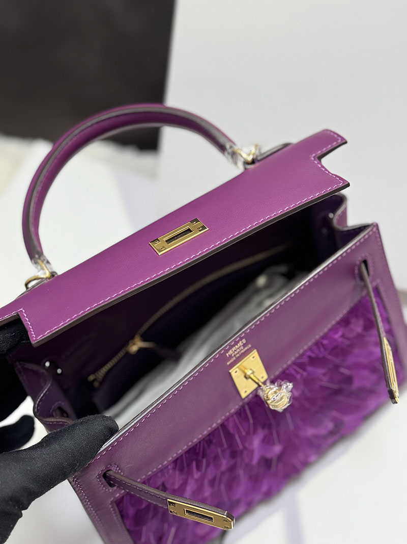 エルメス ケリー25 外縫い アネモネ スイフト/羽 ゴールド金具 2520766 エルメスケリー風バッグ