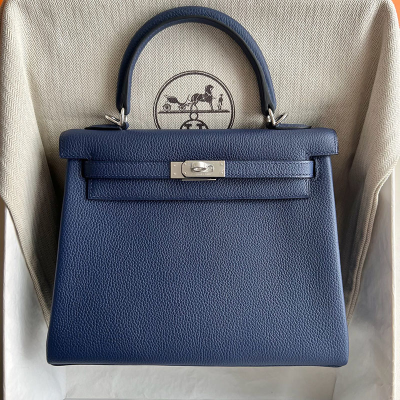 並行輸入品 HERMES ケリー25 内縫い ブルーサフィール トゴ シルバー金具 2521297 レディース エルメス バッグ