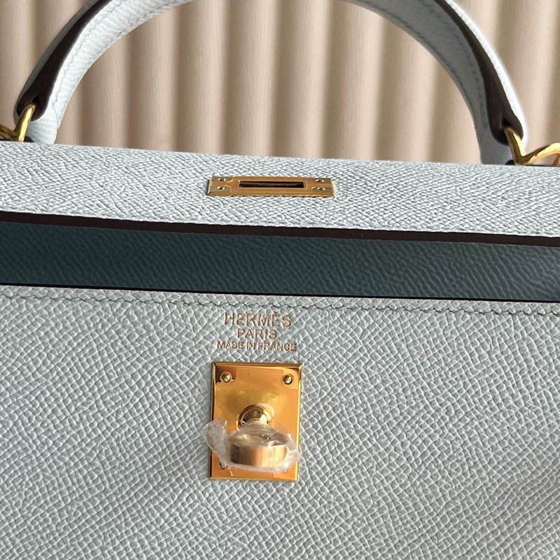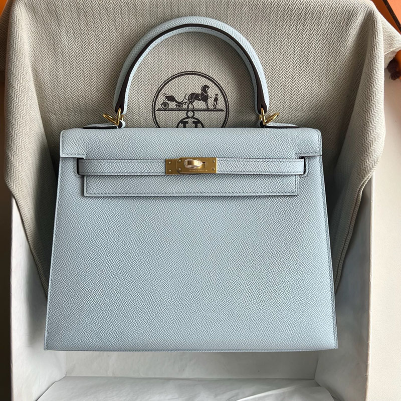 並行輸入品 HERMES ケリー25 外縫い ブルーブリュム ヴォーエプソン ゴールド金具 2521300 レディース エルメス バッグ