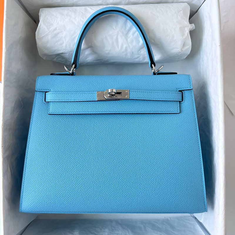エルメスケリーバッグ定価 HERMES ケリー25 外縫い セレステ ヴォーエプソン シルバー金具 2524504