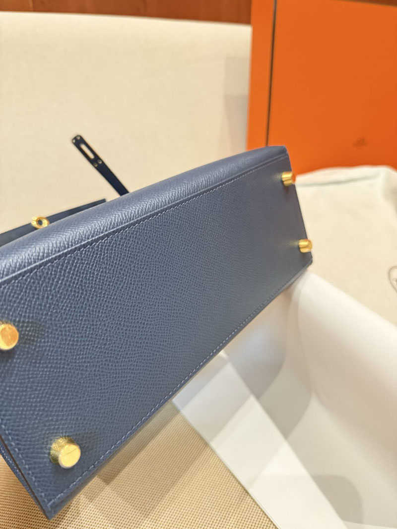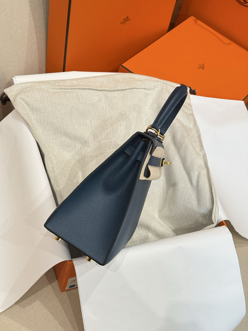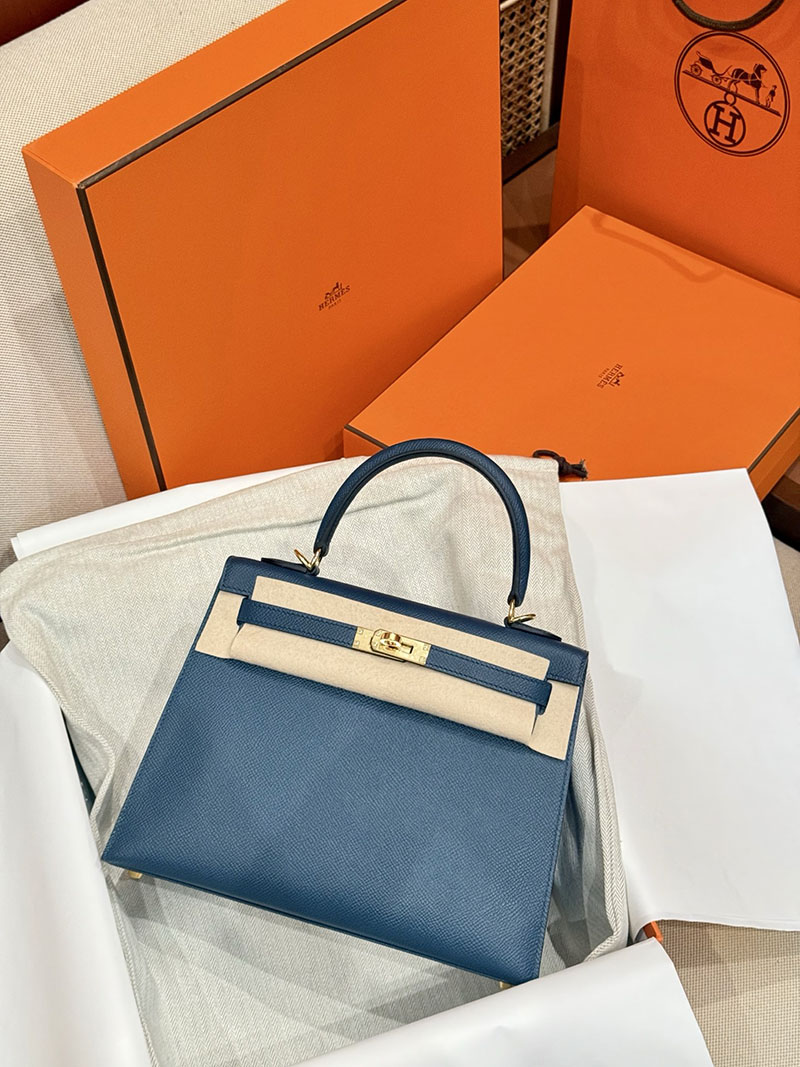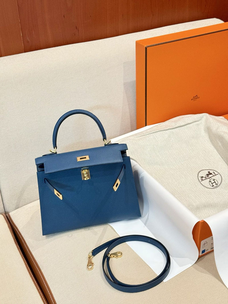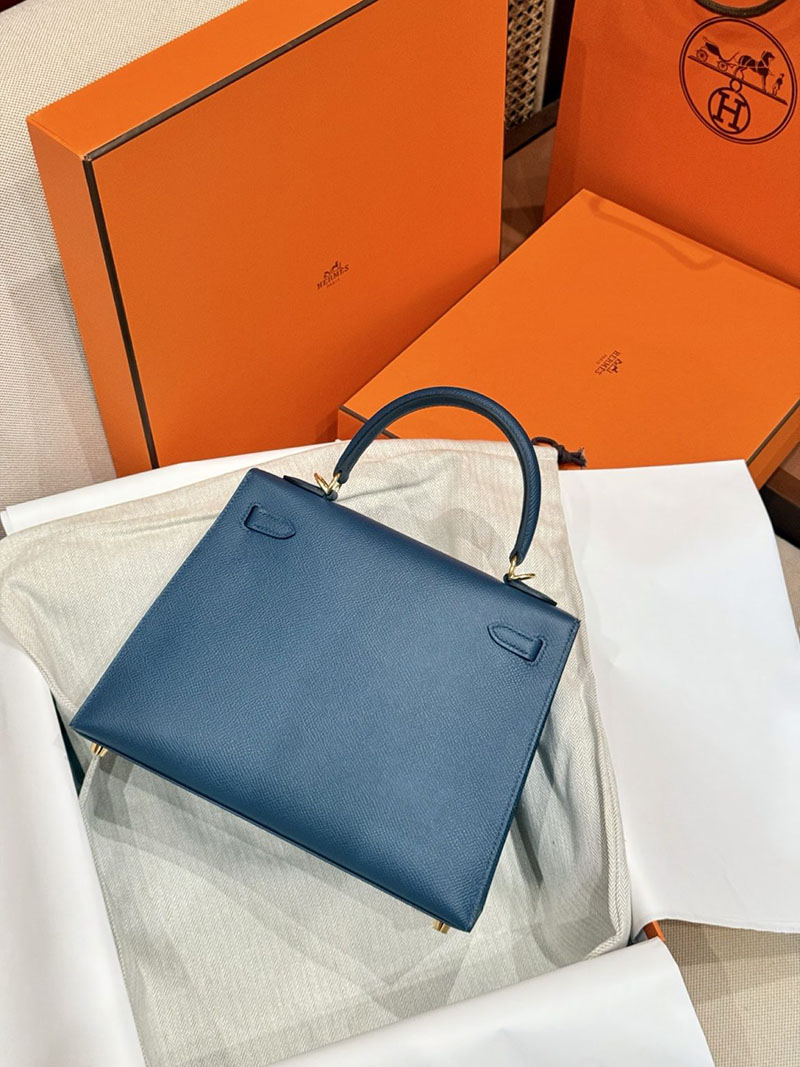 レディース エルメス バッグ HERMES ケリー25 外縫い ディープブルー ヴォーエプソン ゴールド金具 2526022
