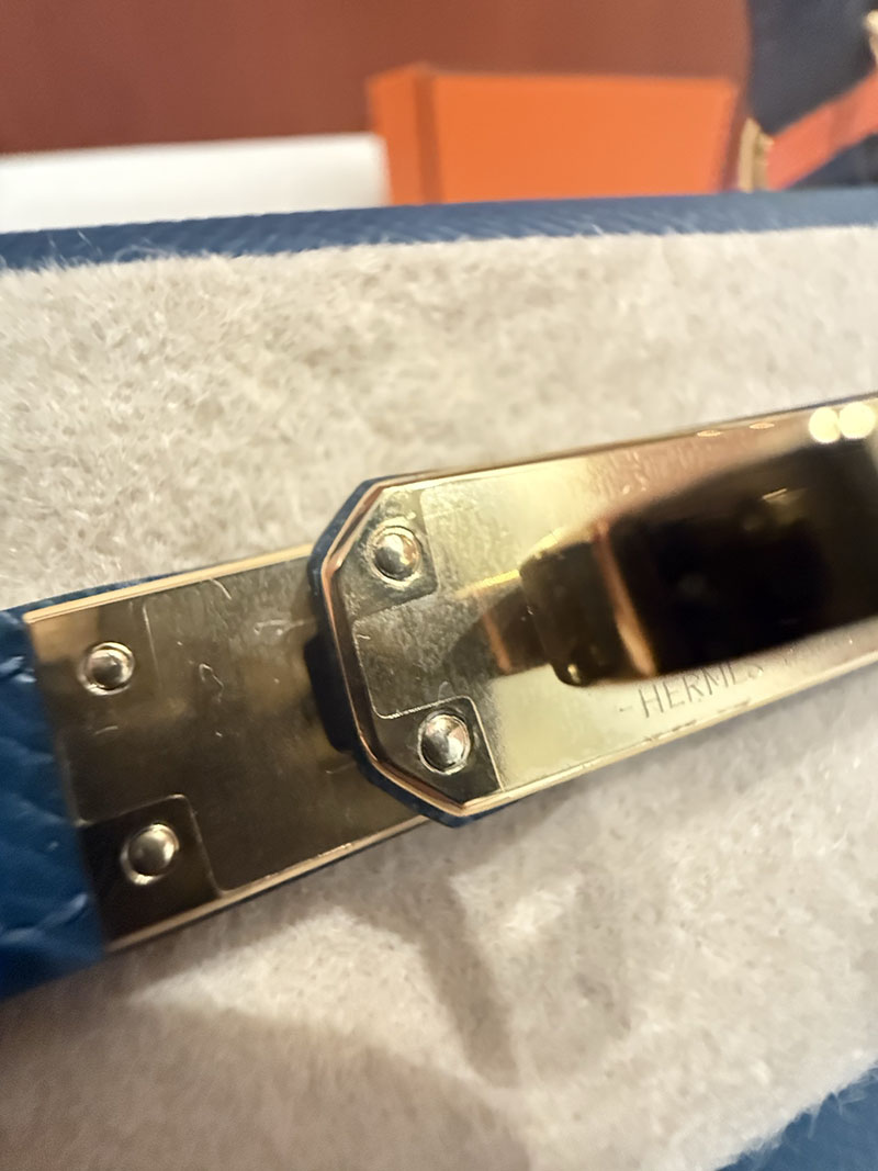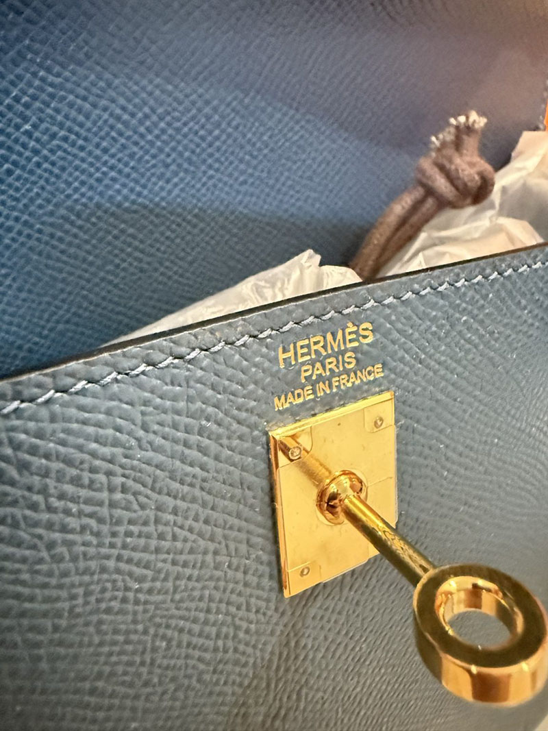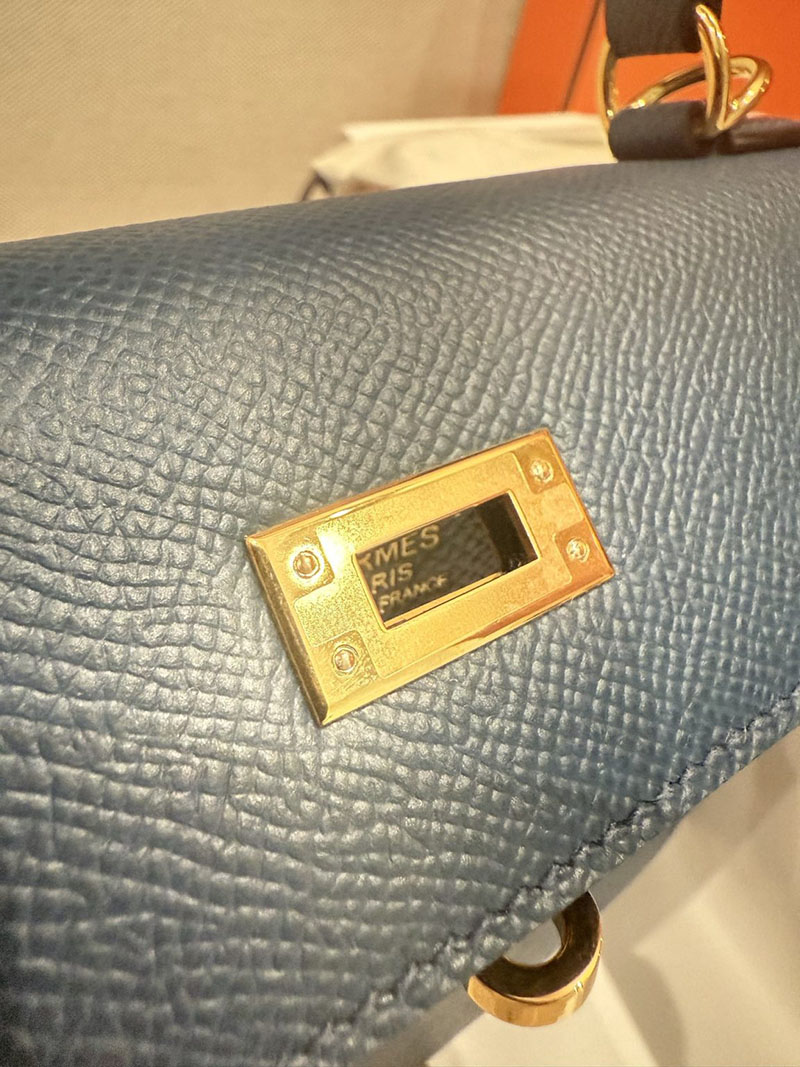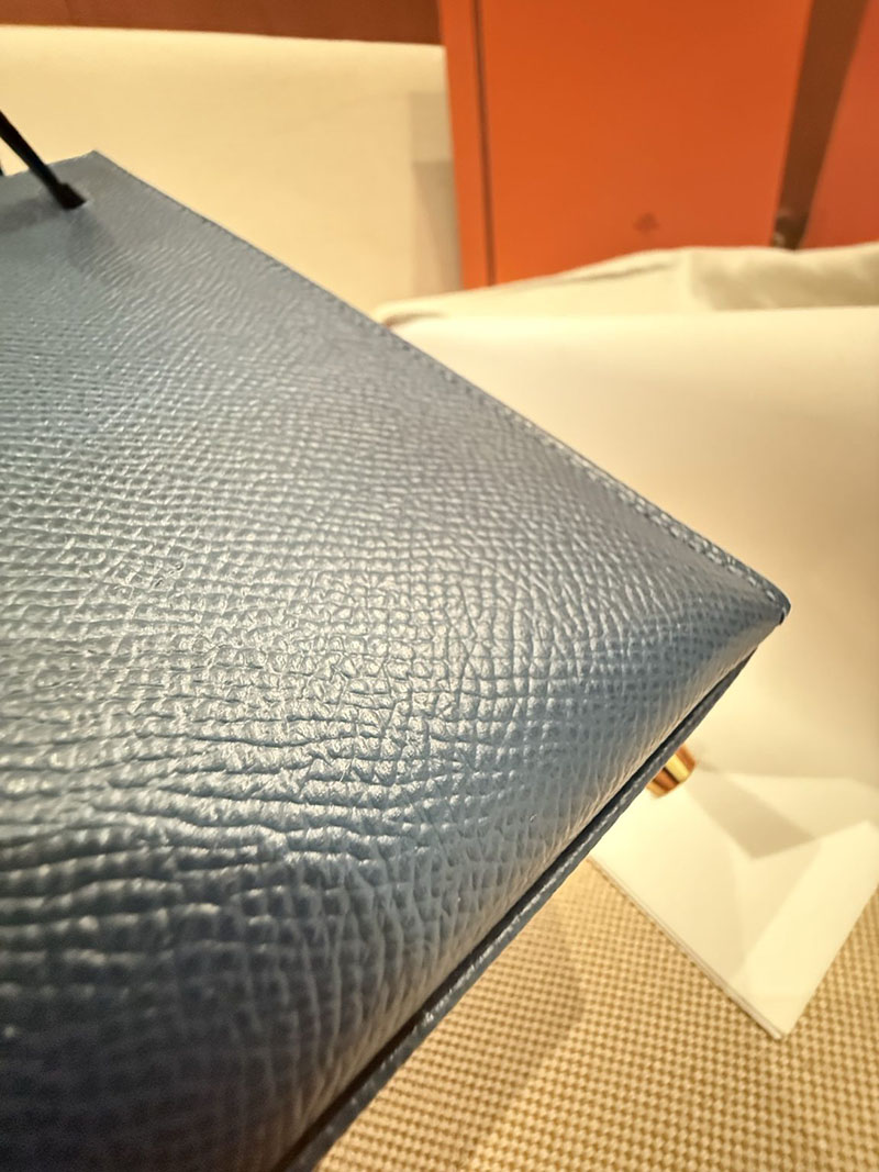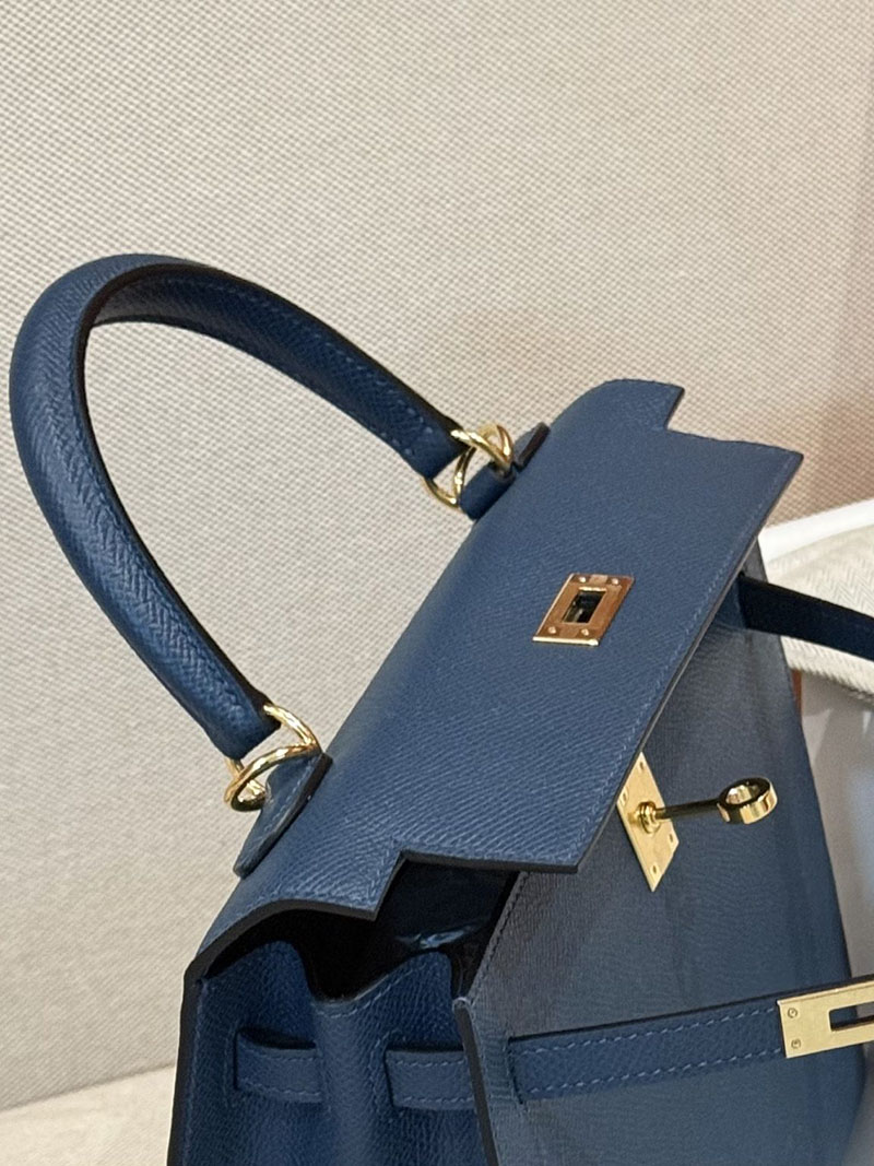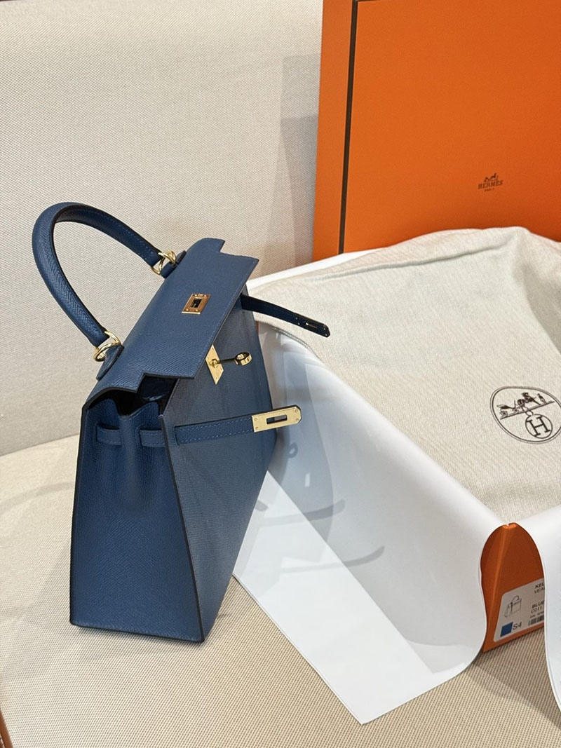 レディース エルメス バッグ HERMES ケリー25 外縫い ディープブルー ヴォーエプソン ゴールド金具 2526022