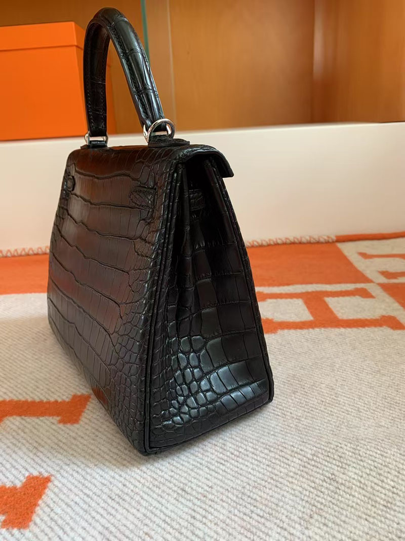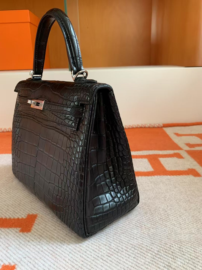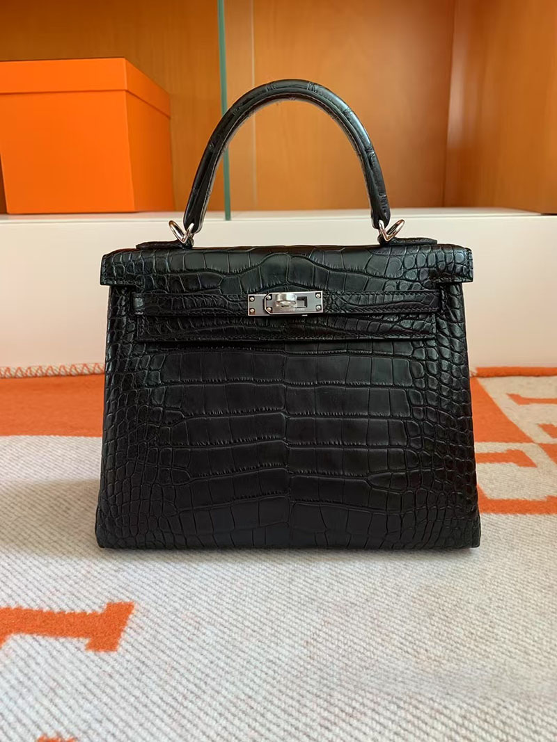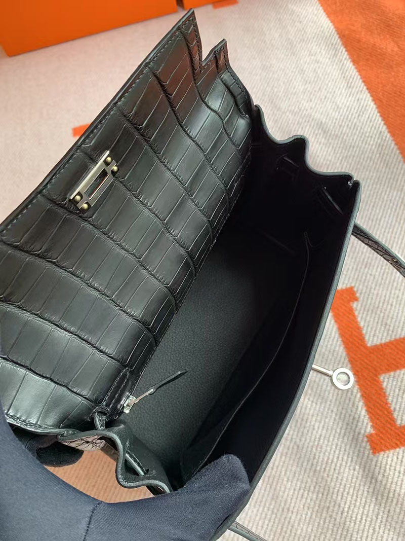 エルメス ケリー クロコ HERMES ケリー25 内縫い 黒 ブラック クロコダイル アリゲーターマット シルバー金具 2627739 エルメス 新作バッグ