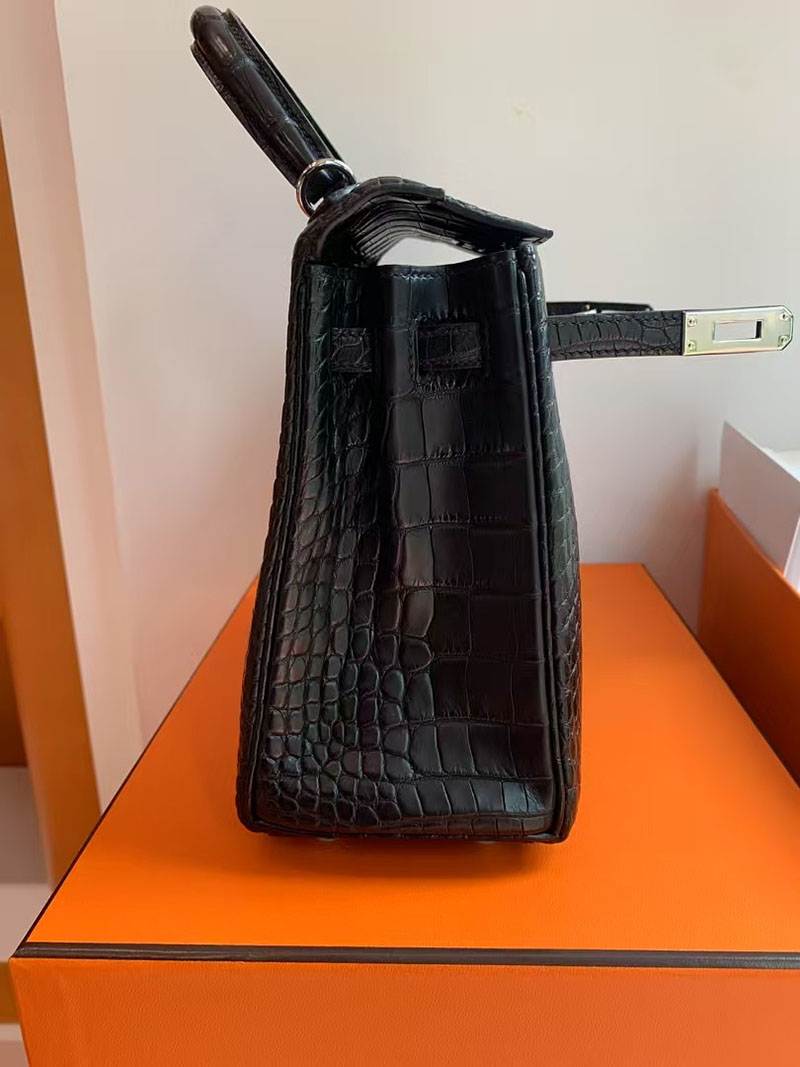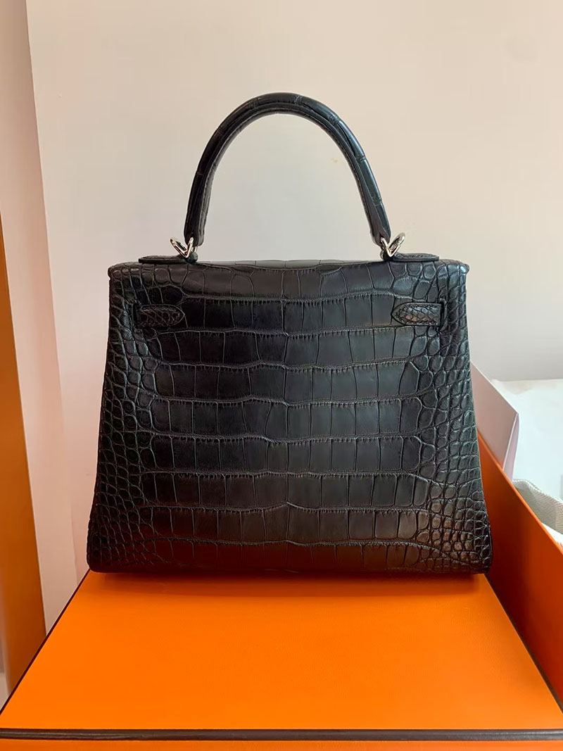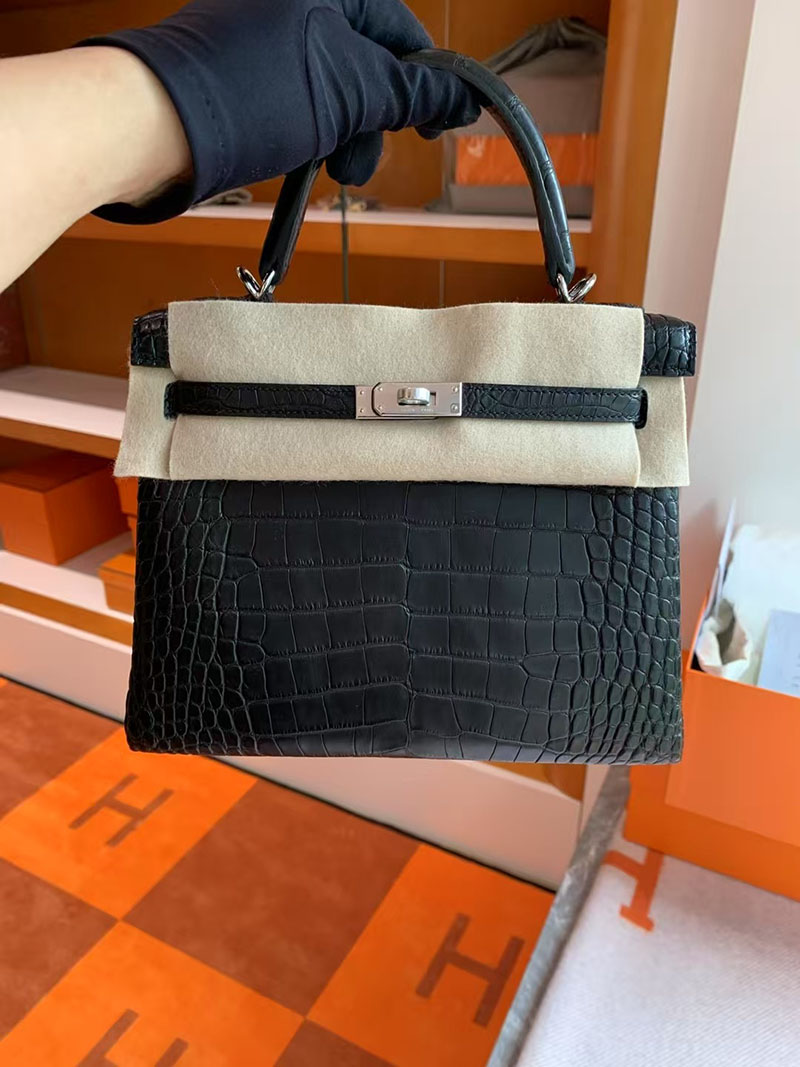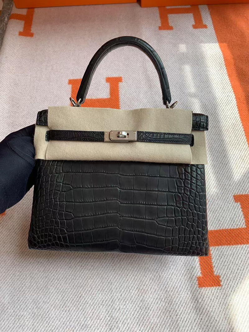エルメス ケリー クロコ HERMES ケリー25 内縫い 黒 ブラック クロコダイル アリゲーターマット シルバー金具 2627739 エルメス 新作バッグ