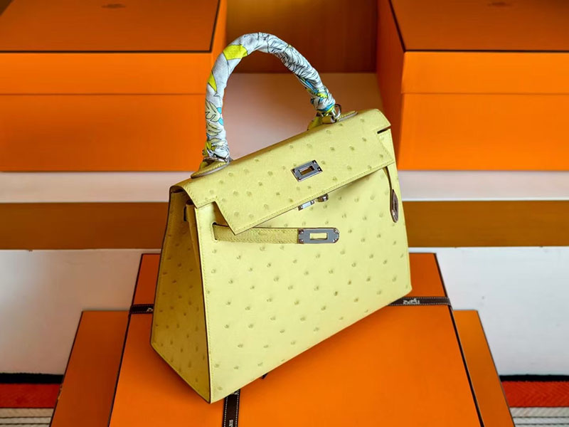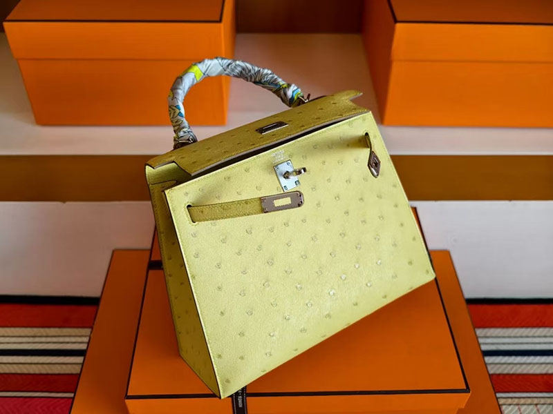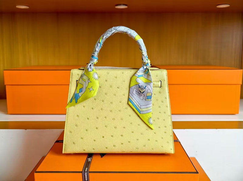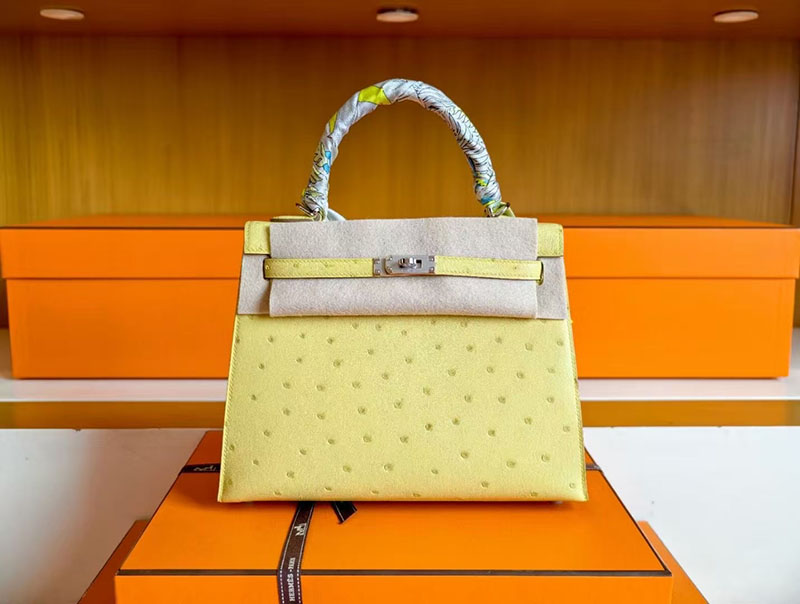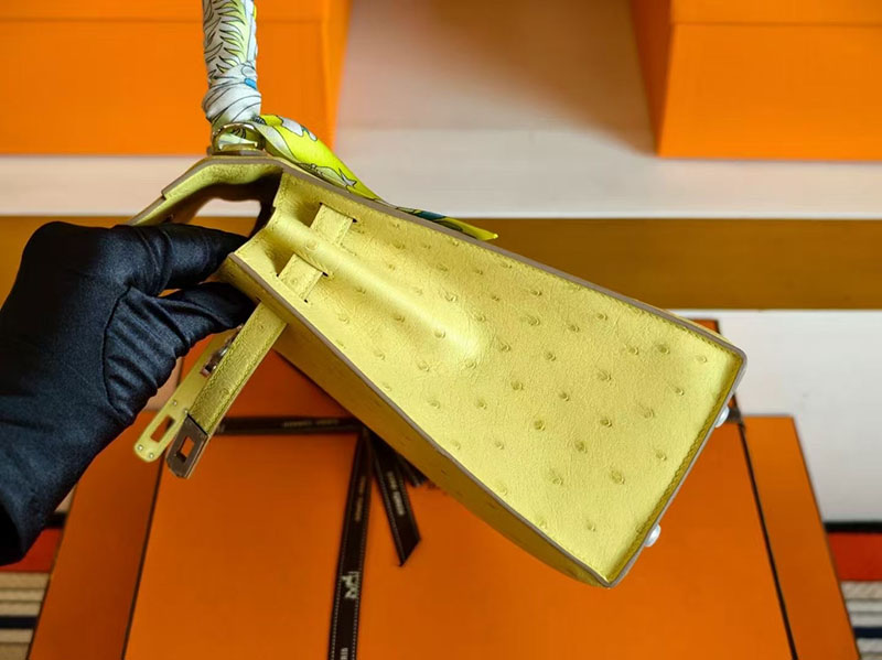 ケリー オーストリッチ 定価 HERMES ケリー25 外縫い ライム オーストリッチ シルバー金具 2627760 エルメス 新作バッグ