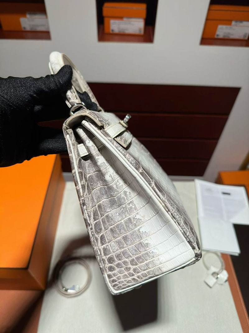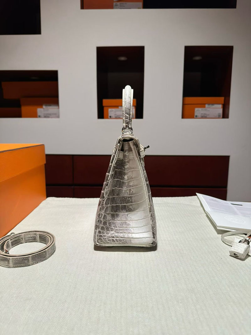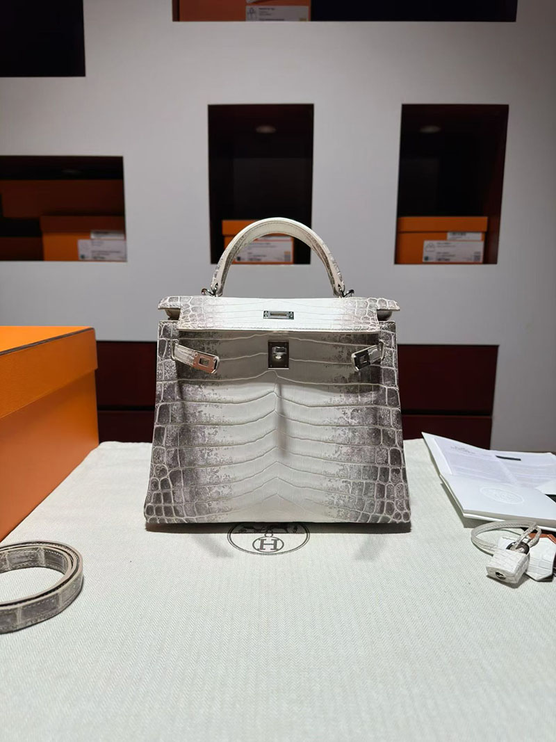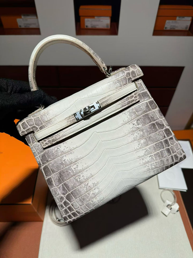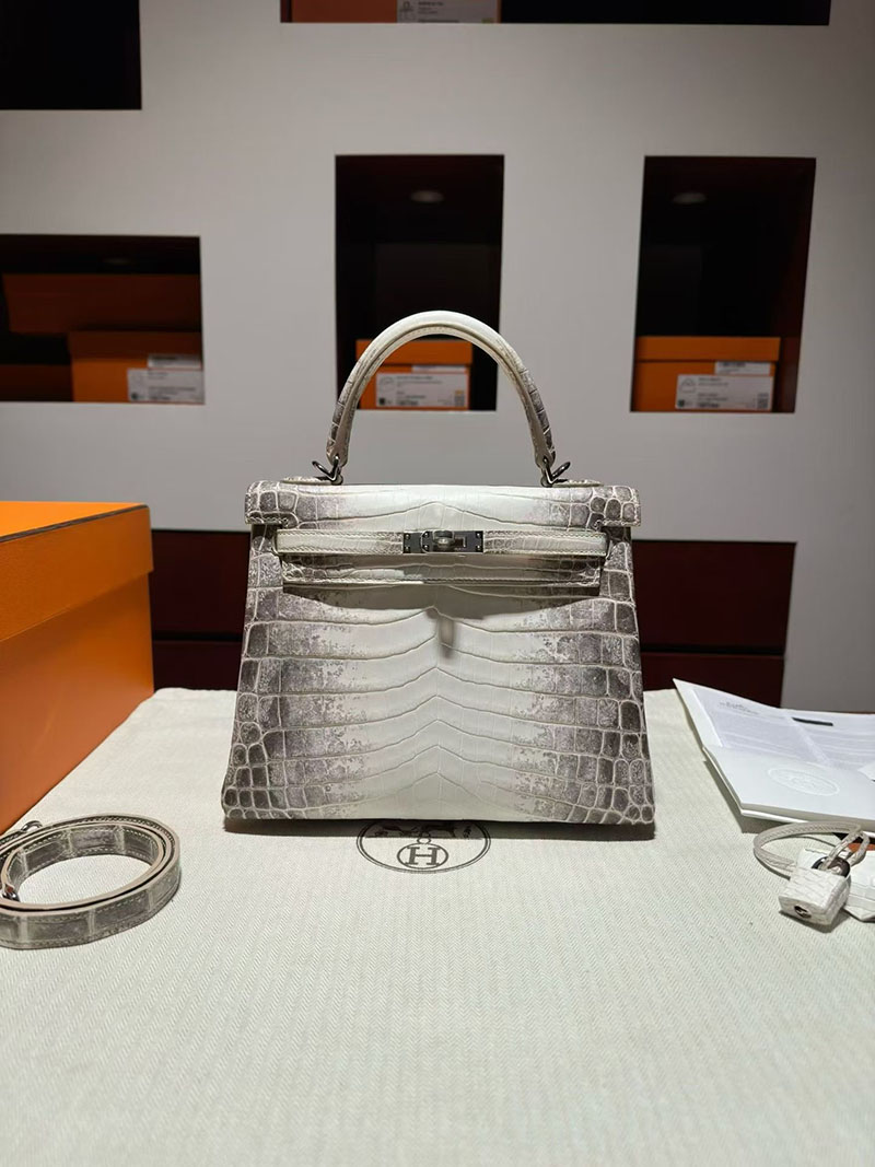 エルメス ケリーバッグ レディース HERMES ケリー25 内縫い ヒマラヤ クロコダイル シルバー金具 2630375 エルメス ケリー ヒマラヤ