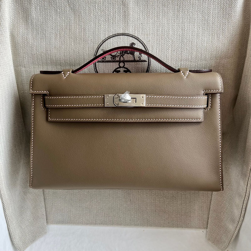 並行輸入品 HERMES ポシェットケリー エトゥープ/ローズアザレ スイフト シルバー金具 2521279 ポシェットケリー ミニケリー