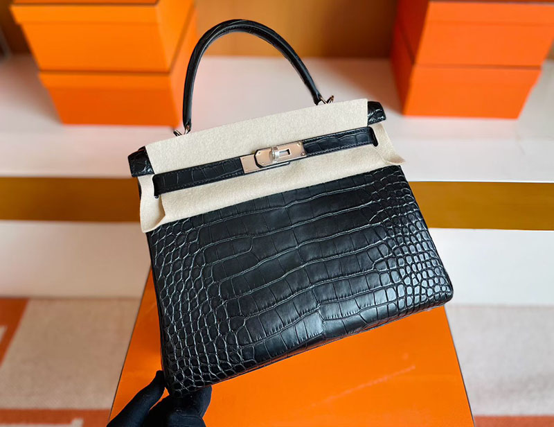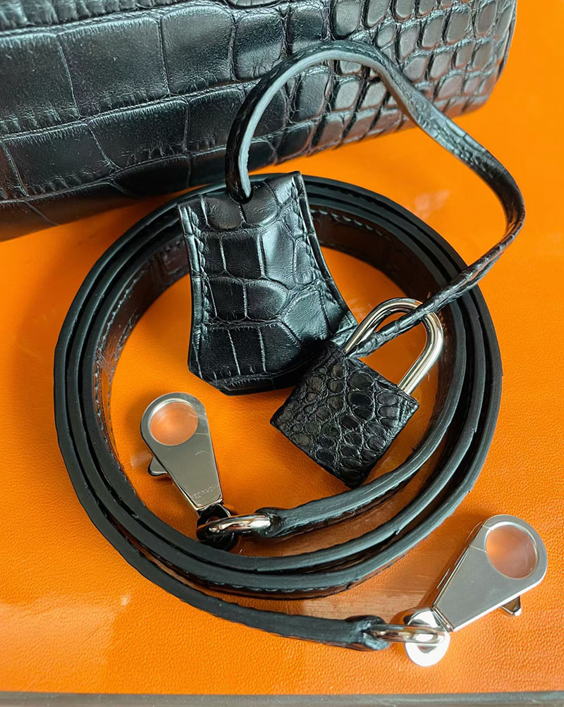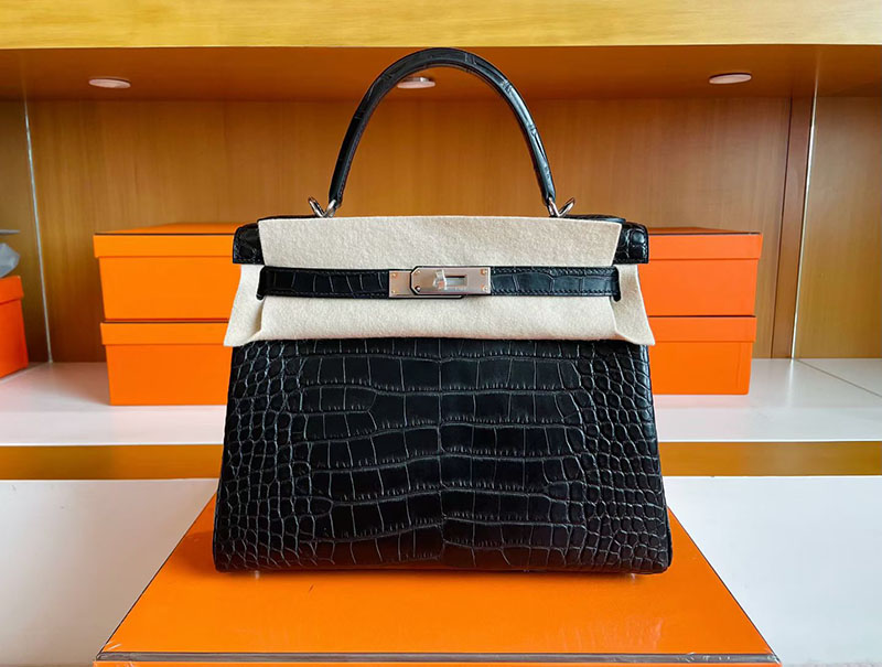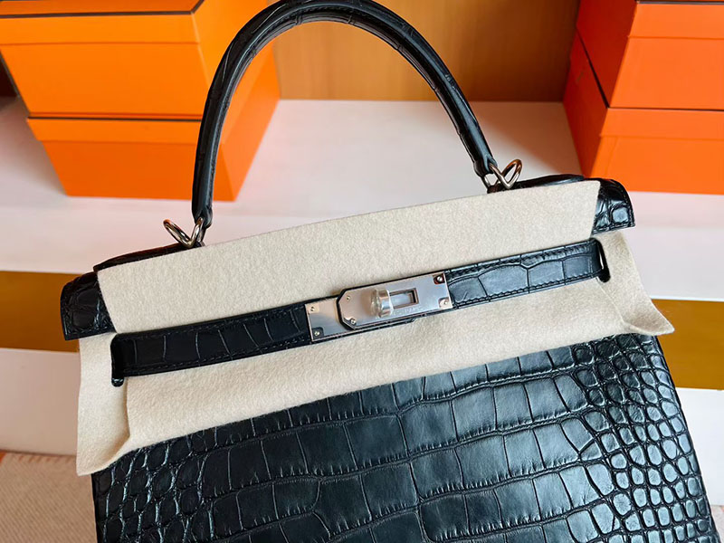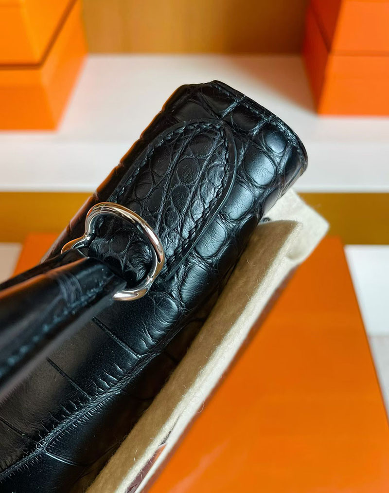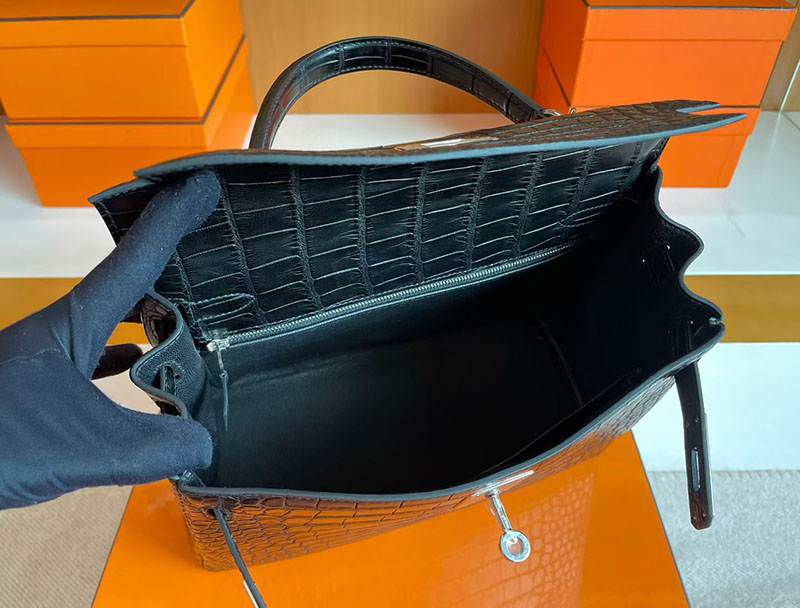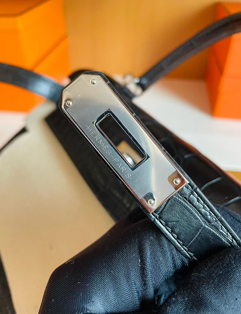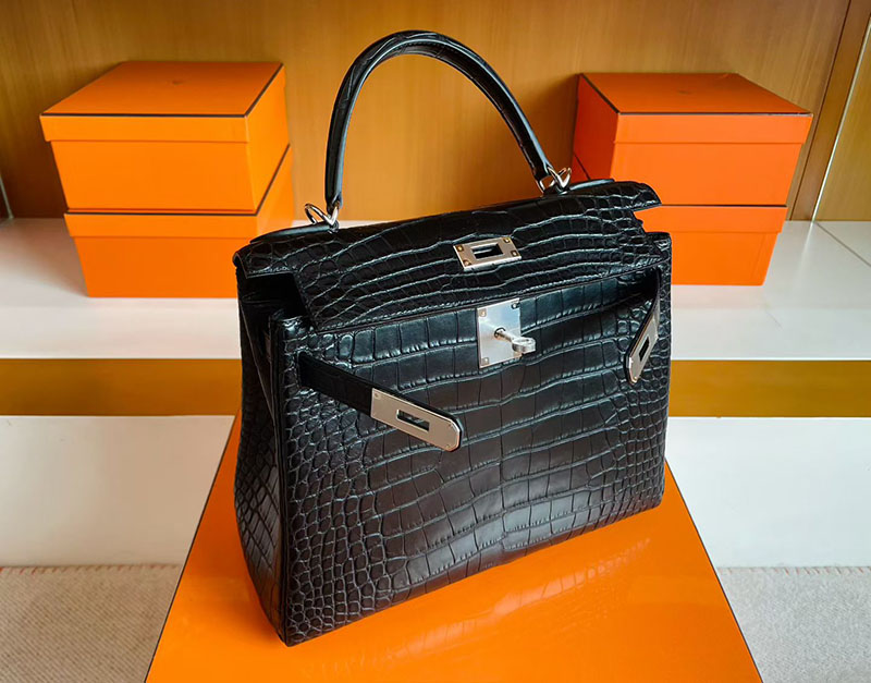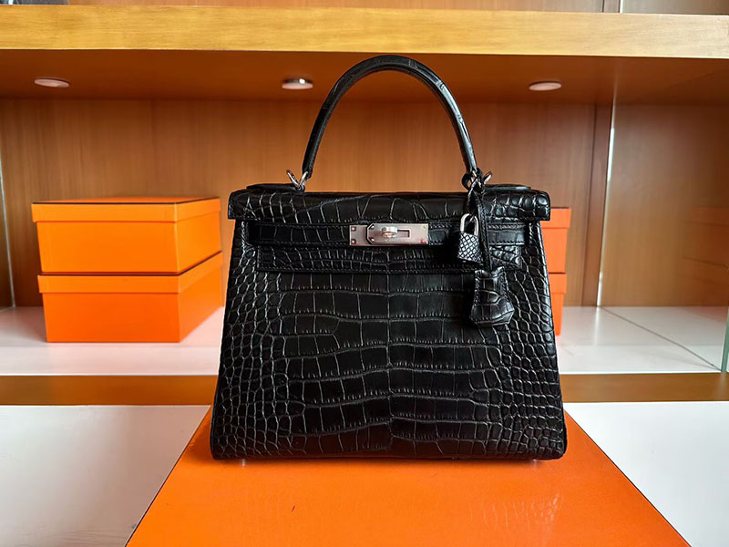 ケリー28 黒 HERMES ケリー28 内縫い 黒 ブラック クロコダイル アリゲーターマット シルバー金具 2627835 エルメス 新作バッグ