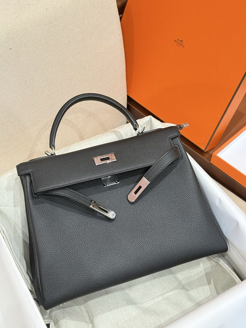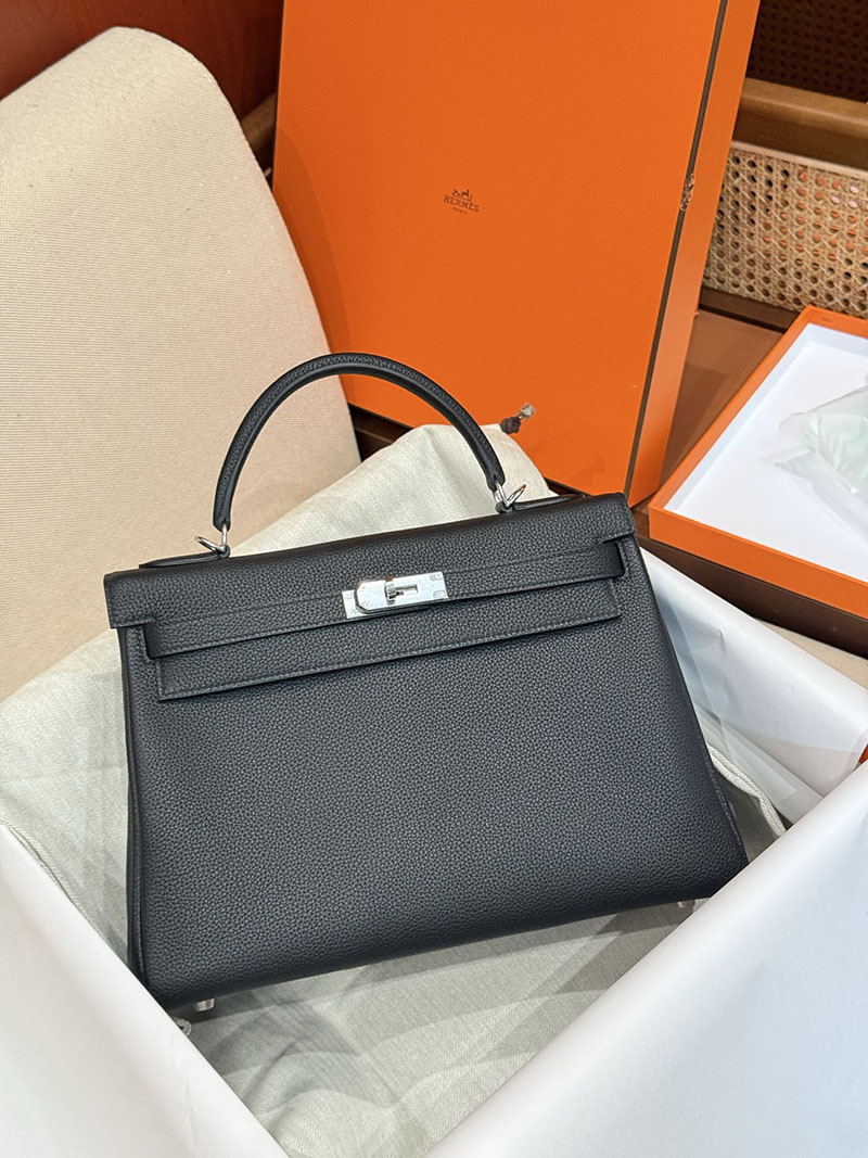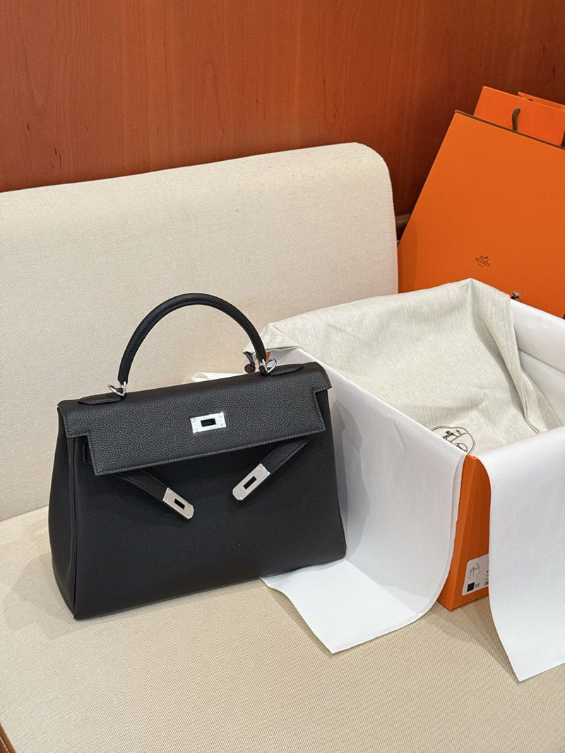 レディース エルメス バッグ HERMES ケリー32/内縫 黒 ブラック トゴ シルバー金具 2526024 ケリー32 定価