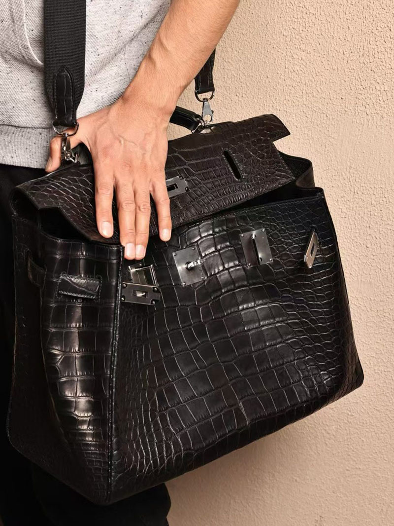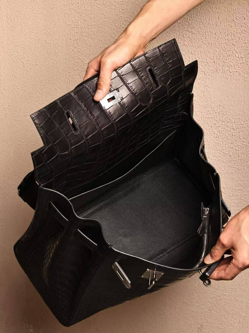 エルメス マキシケリー42 メンズ HERMES ケリー 42cm 内縫い クロ クロコダイル アリゲーターマット シルバー金具 2412889