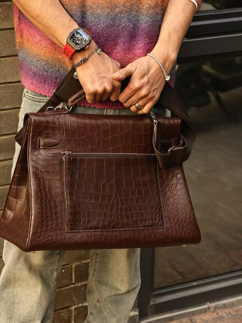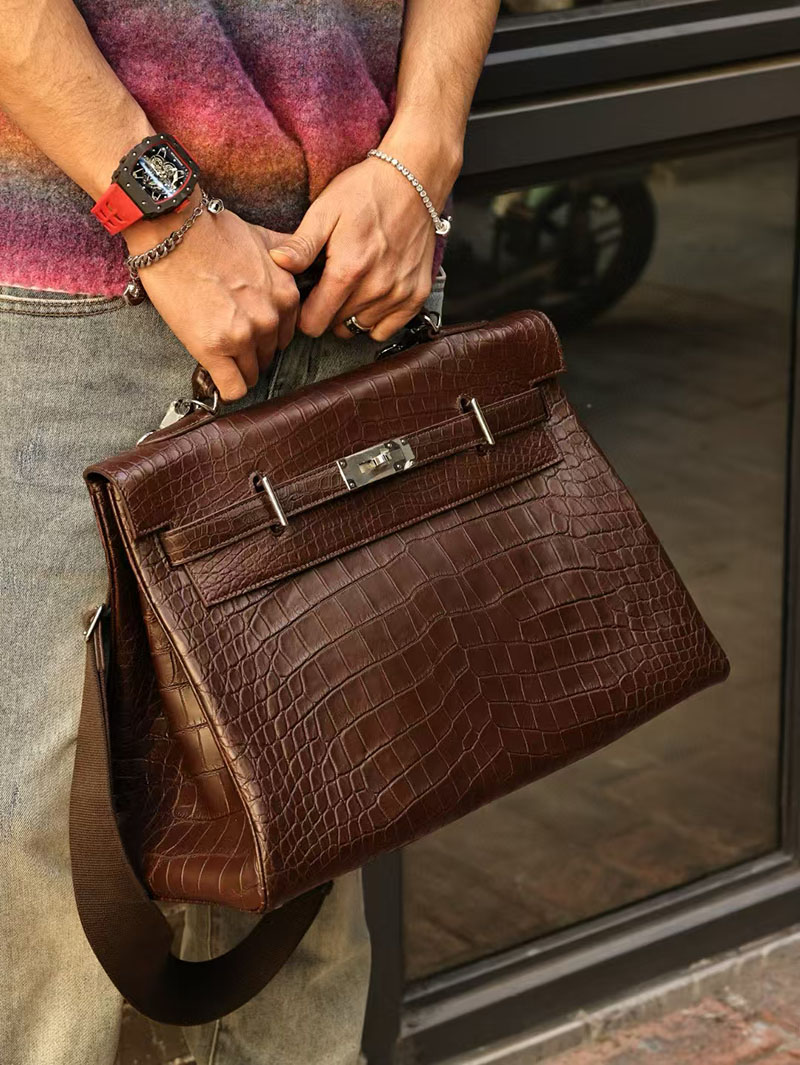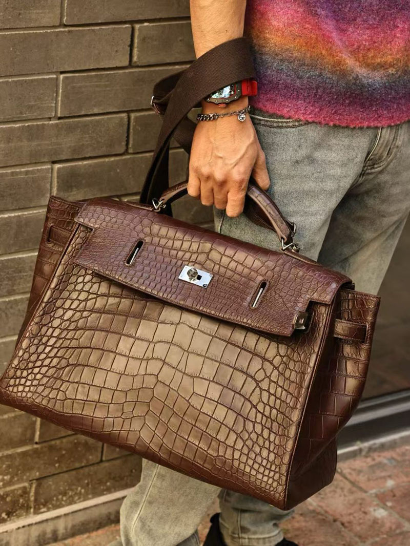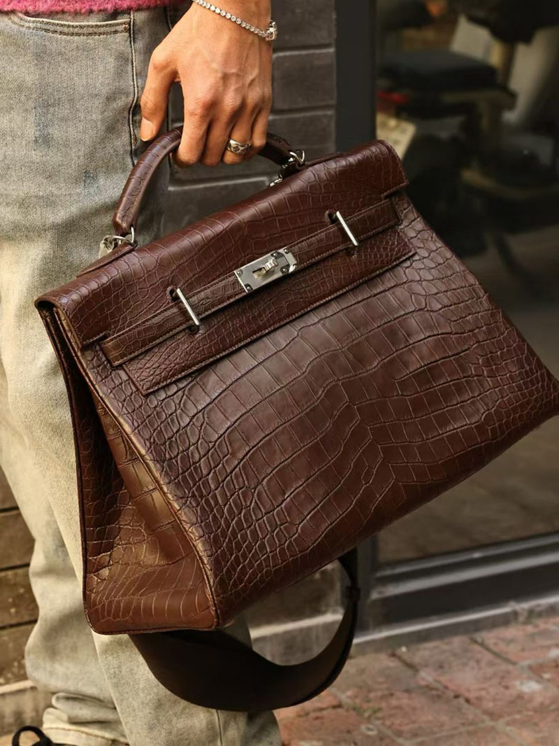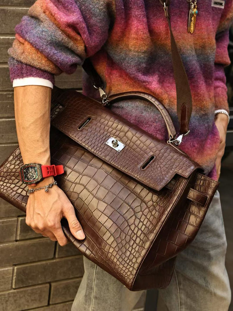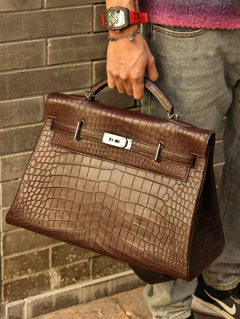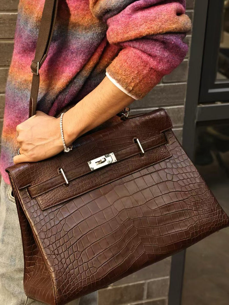 エルメス メンズ バッグ 人気 HERMES ケリー 42cm 内縫い アバンヌ クロコダイル アリゲーターマット シルバー金具 2519453