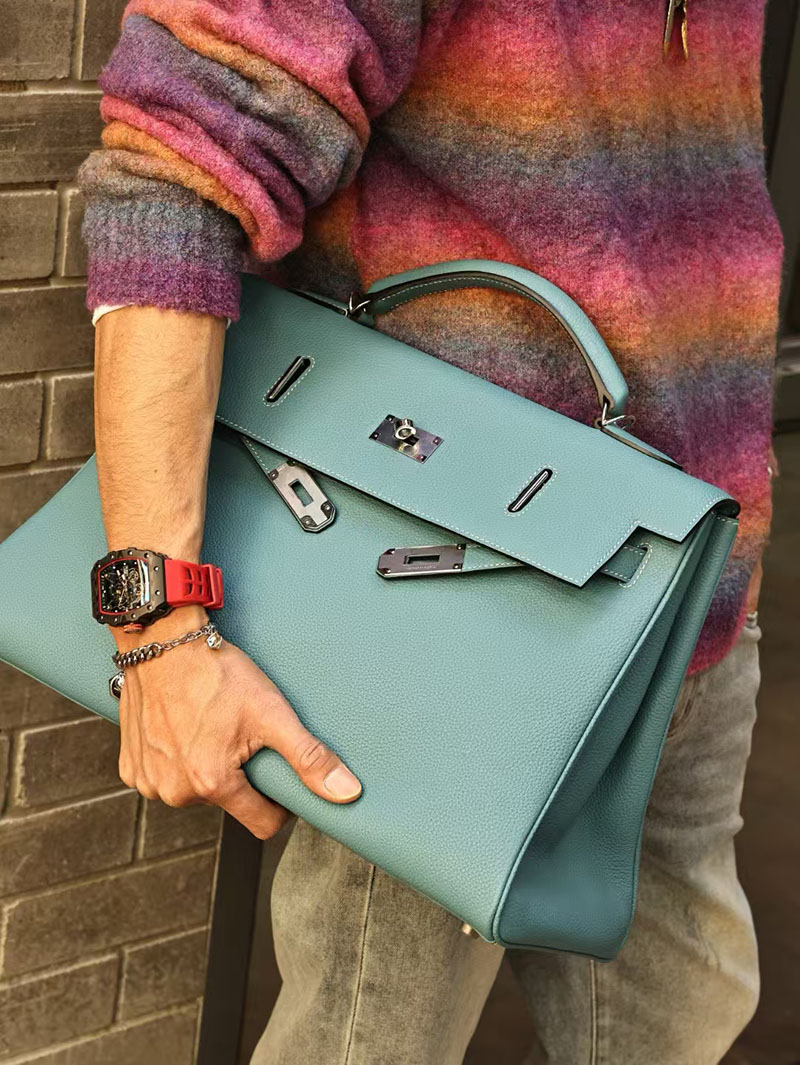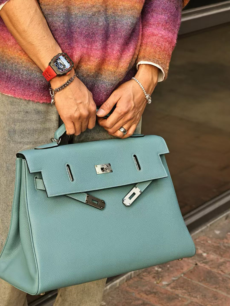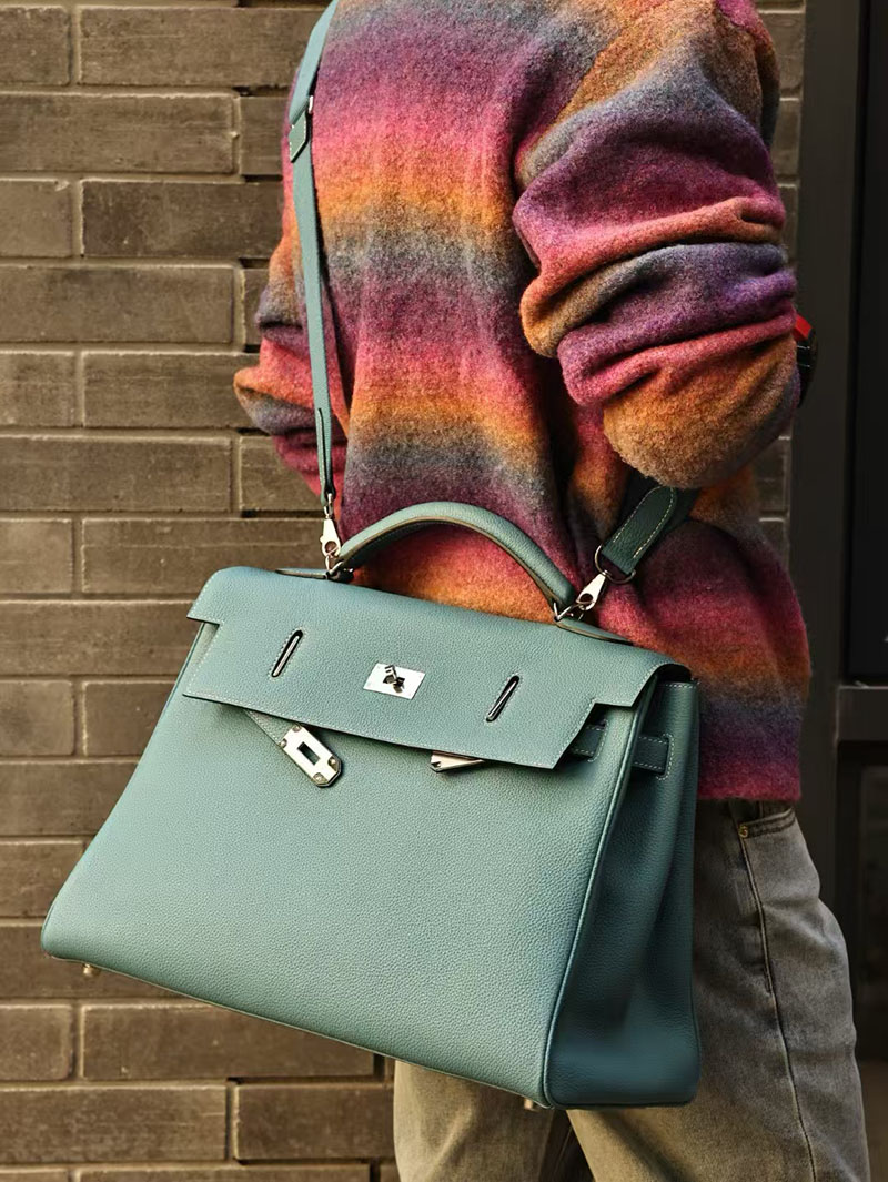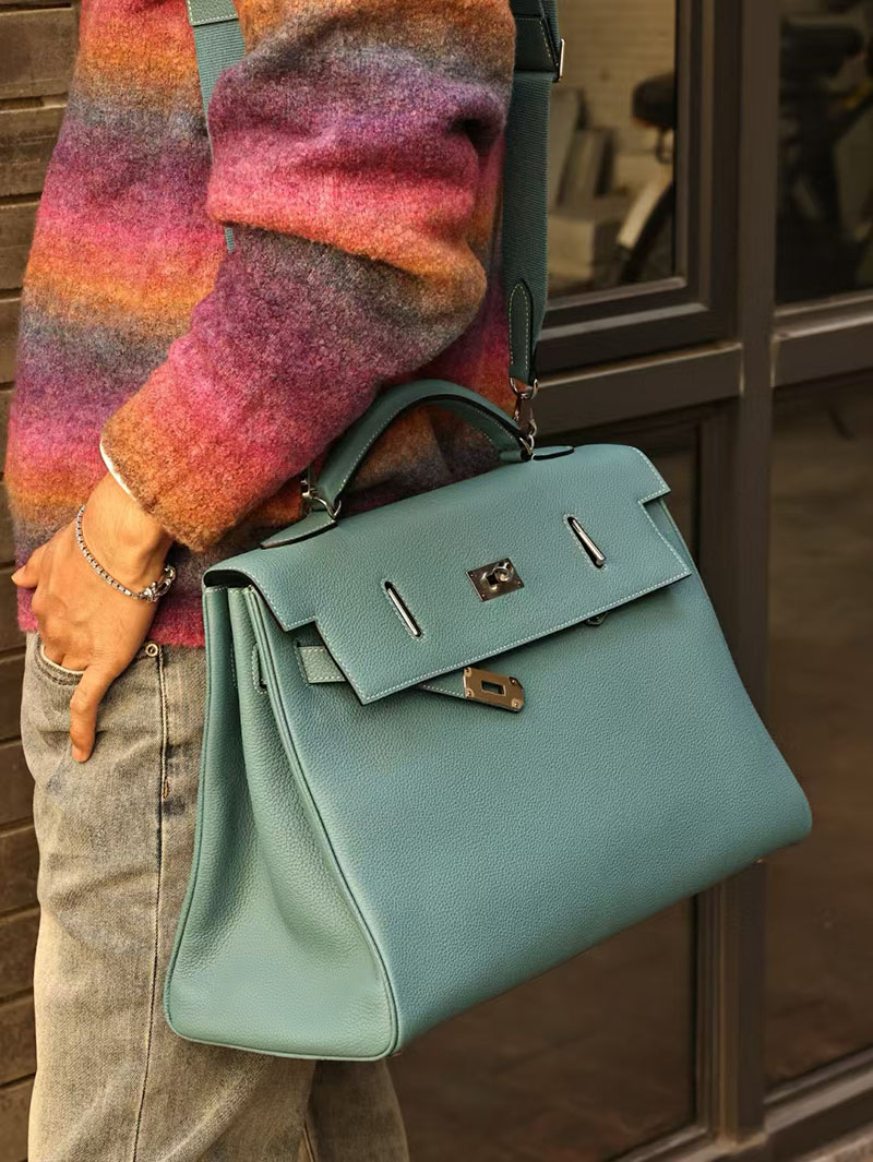 エルメス メンズバッグ 人気 HERMES ケリー 42cm 内縫い ブルージーン トゴ シルバー金具 2519456