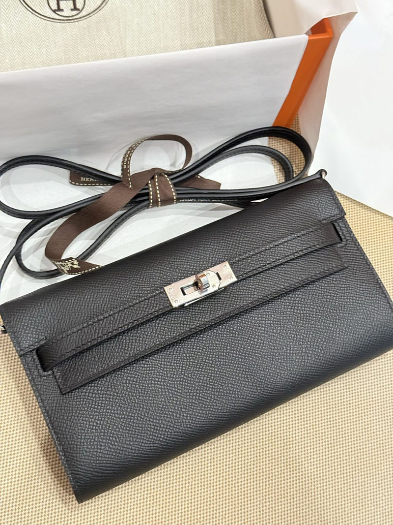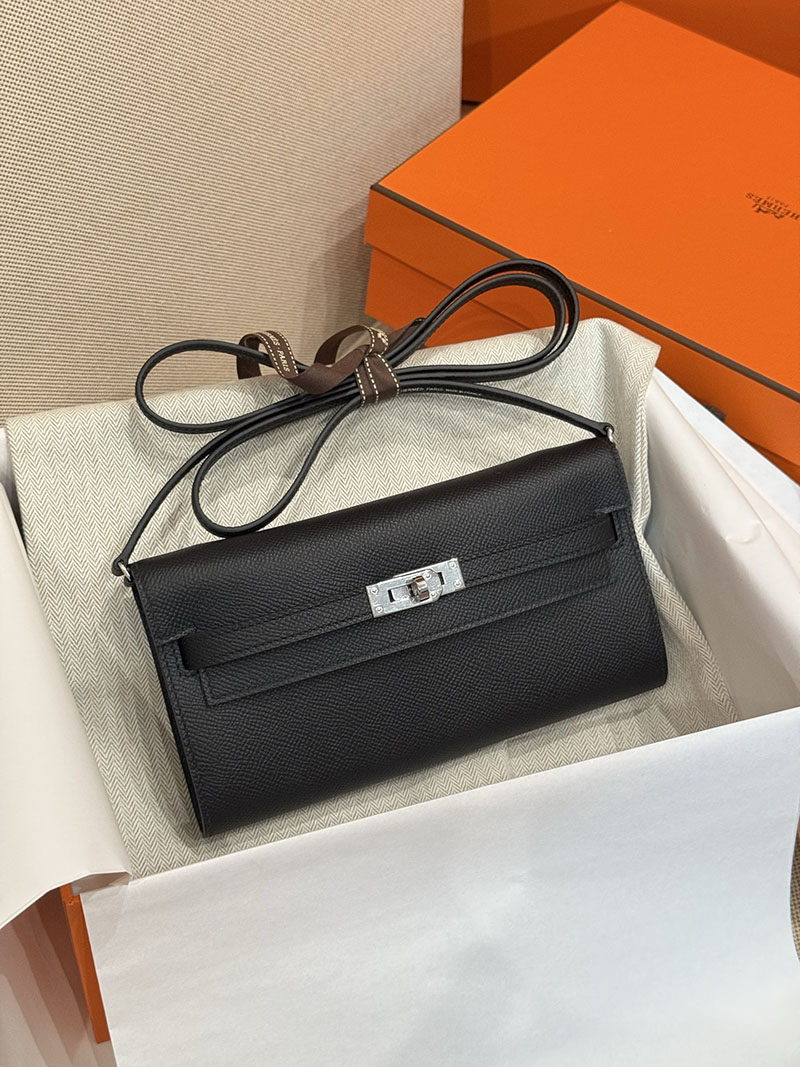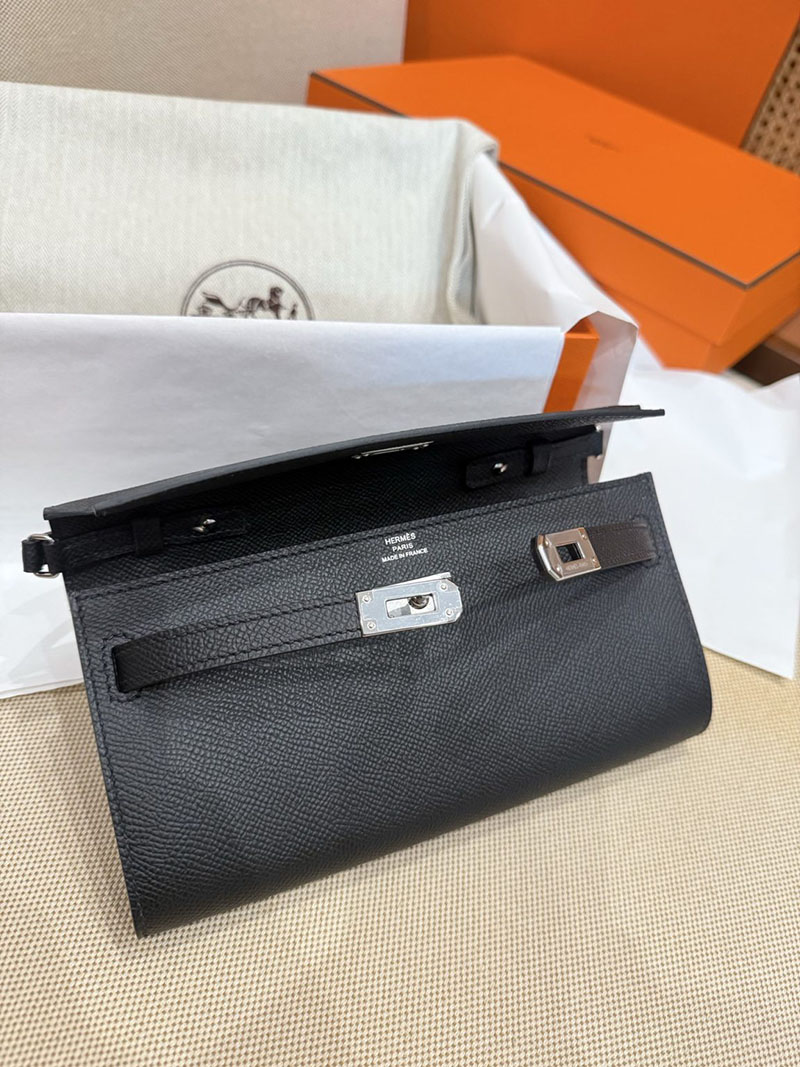 エルメスコピー HERMES 長財布 ケリーウォレット ロング トゥーゴー 黒 ブラック ヴォーエプソン シルバー金具 2524178