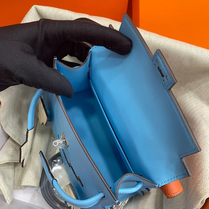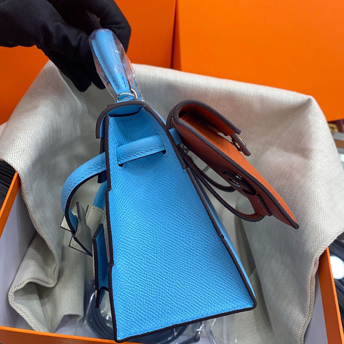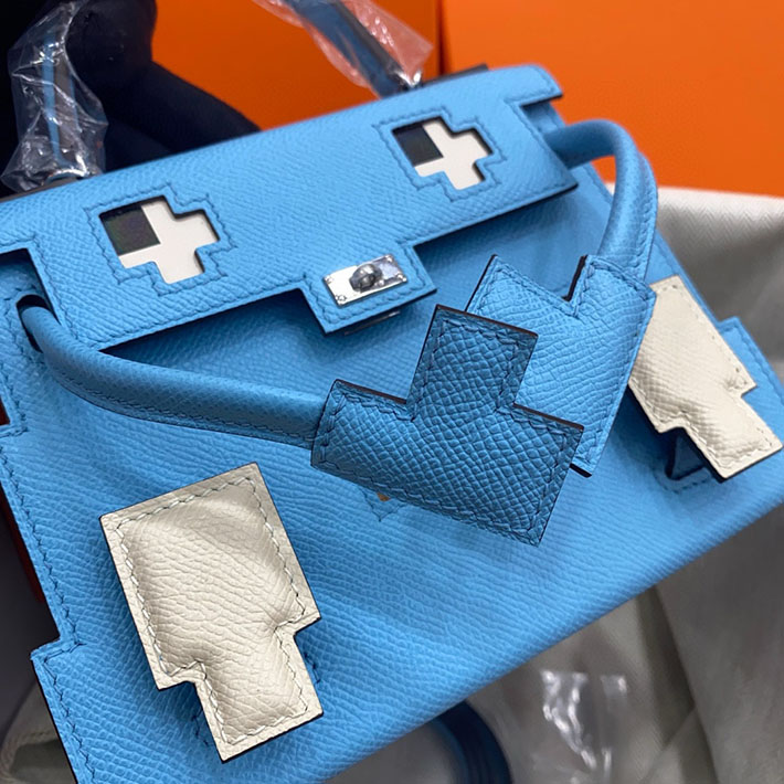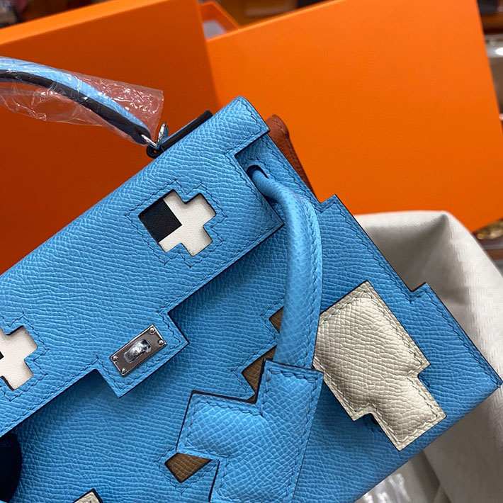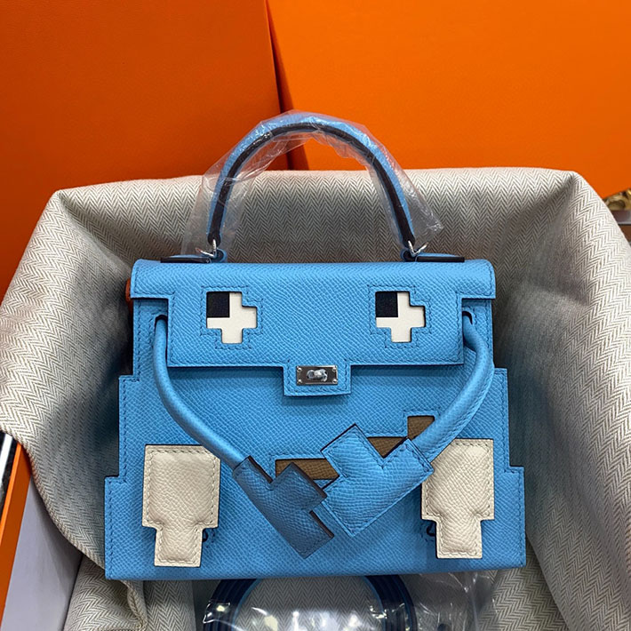 エルメス ケリードールピクト パーソナルオーダー ブルーフリーダ/クレ/ブラック/ホワイト/ゴールド ヴォーエプソン シルバー金具 定価 2515781