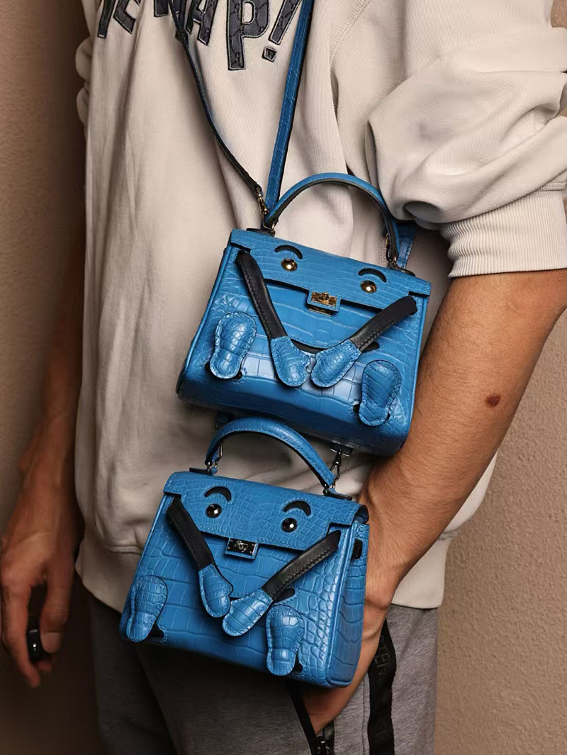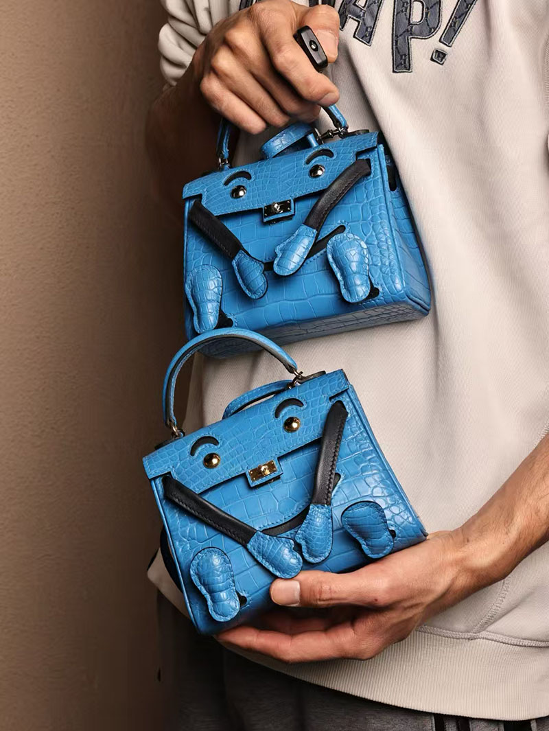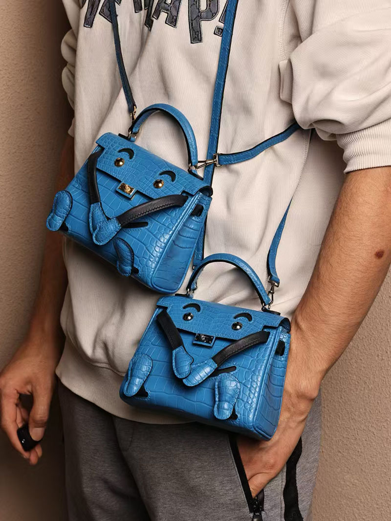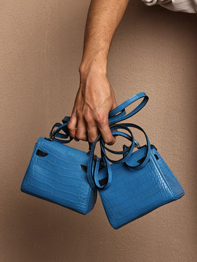 エルメスコピー HERMES ケリードール パーソナル ブルーイドラ/黒 ブラック クロコダイル アリゲーターマット シルバー金具 2524006