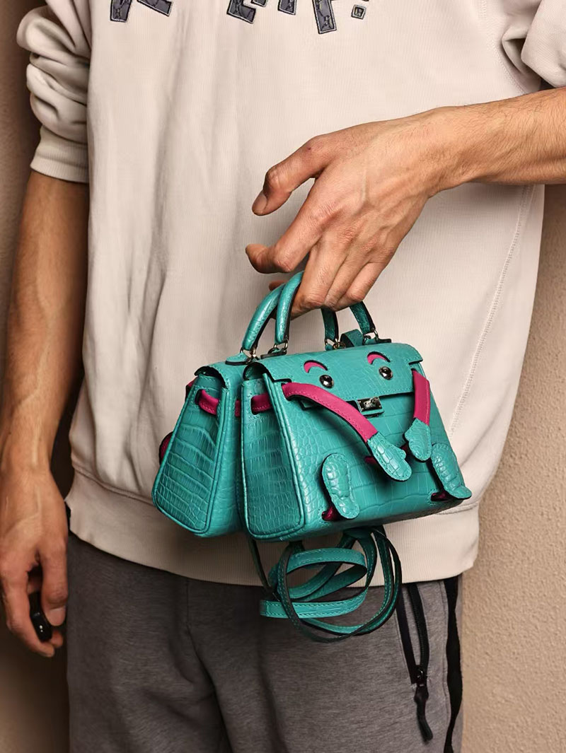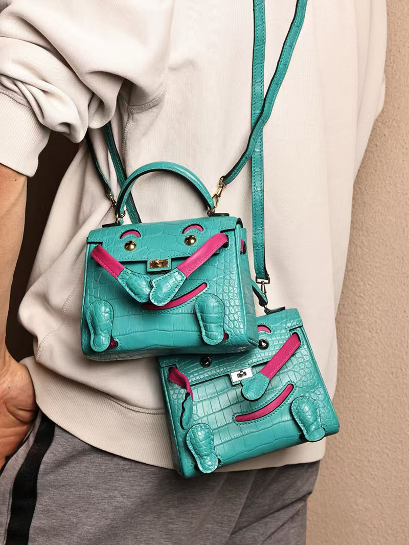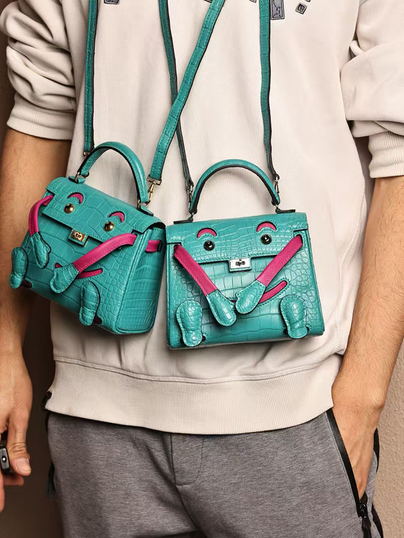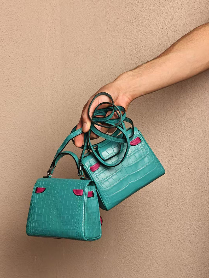 エルメスコピー HERMES ケリードール パーソナル ブルーパオン/ローズショッキング クロコダイル アリゲーターマット ゴールド金具 2524007