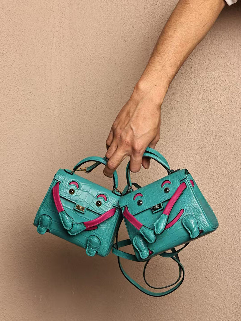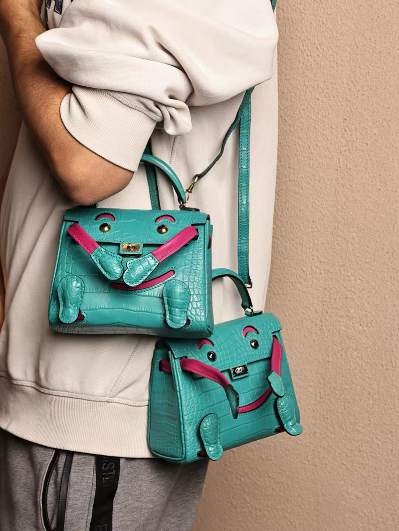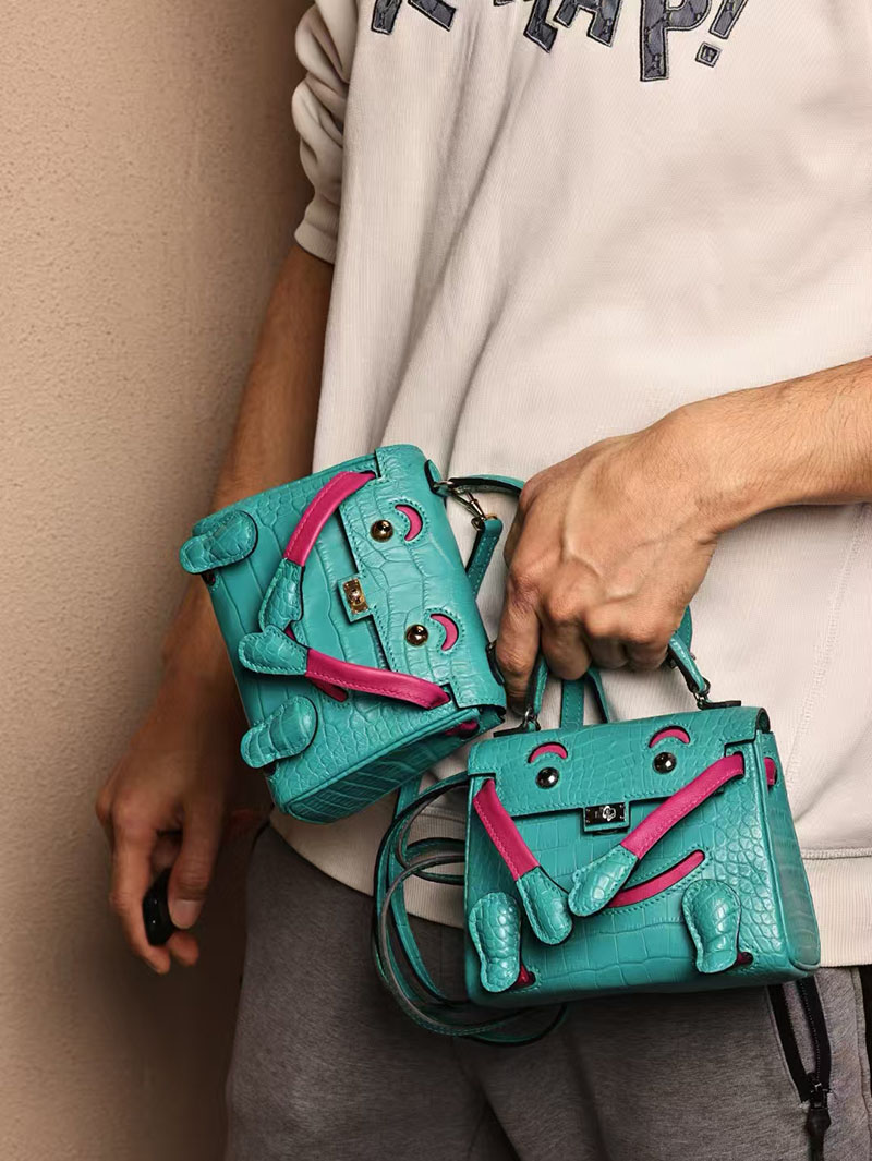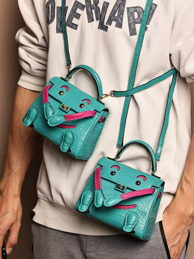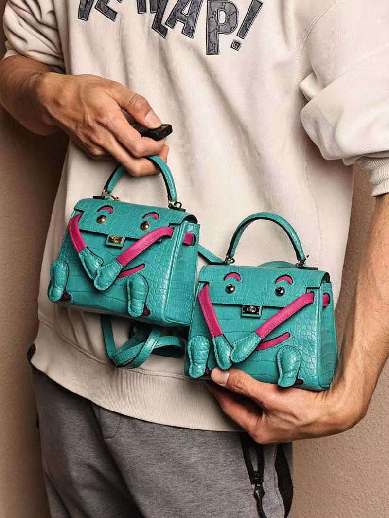 エルメスコピー HERMES ケリードール パーソナル ブルーパオン/ローズショッキング クロコダイル アリゲーターマット ゴールド金具 2524007