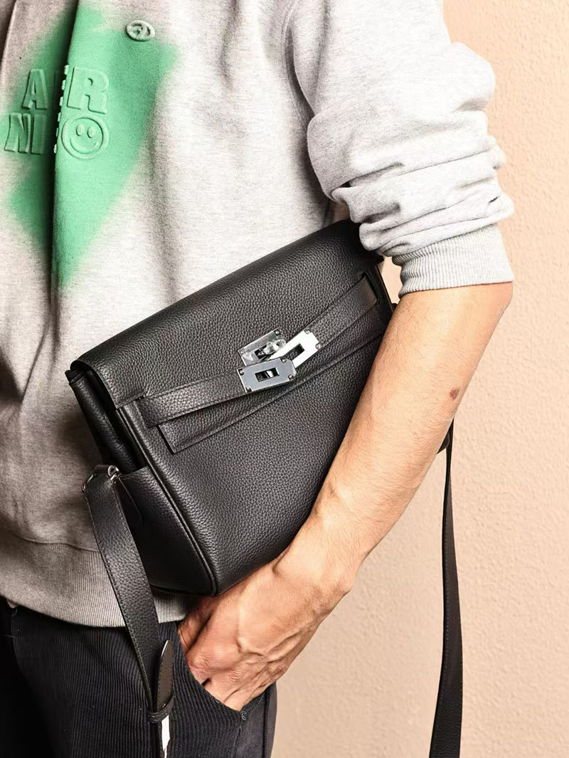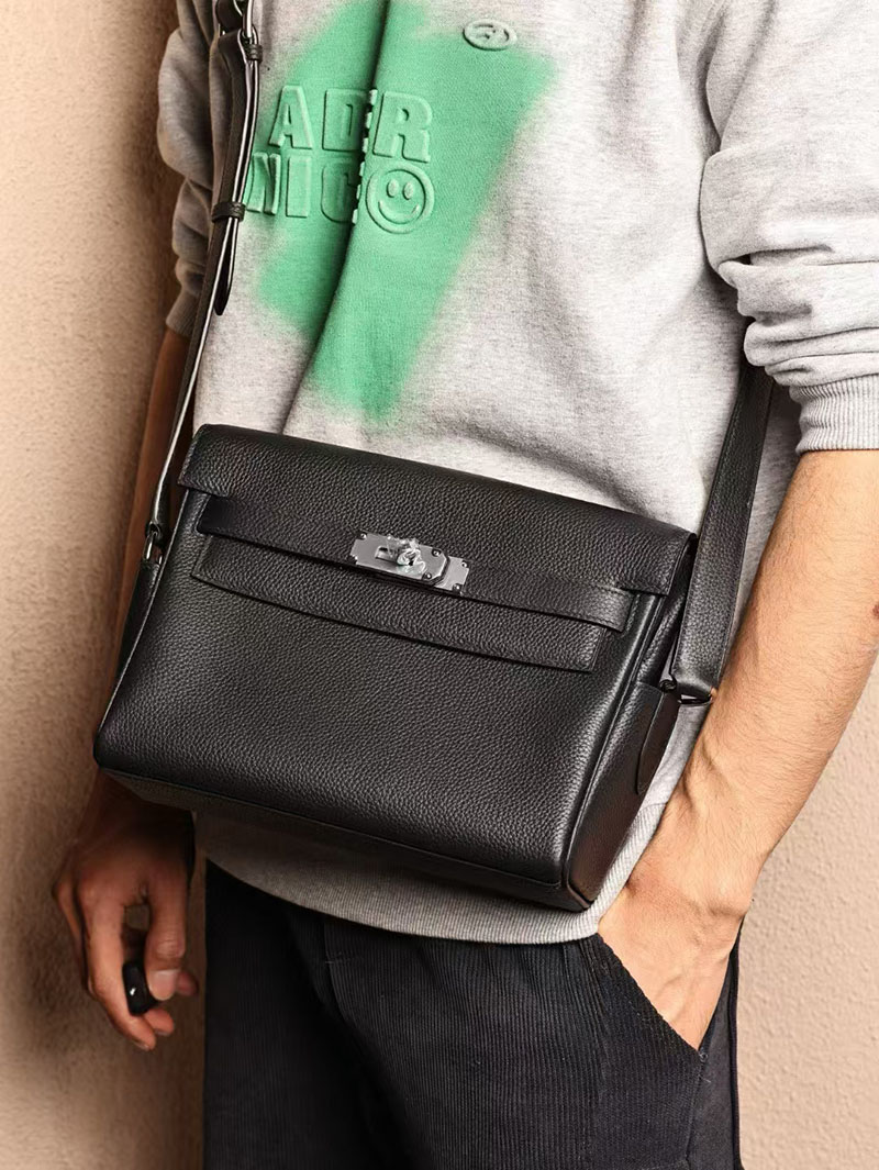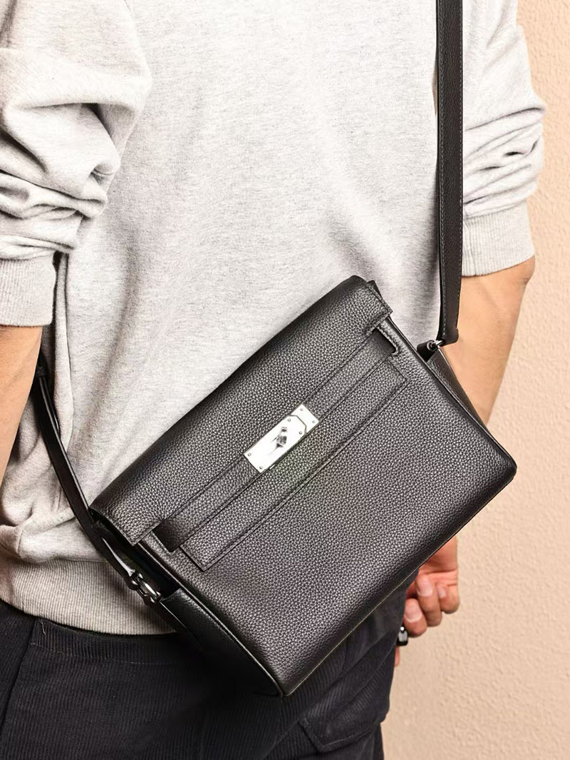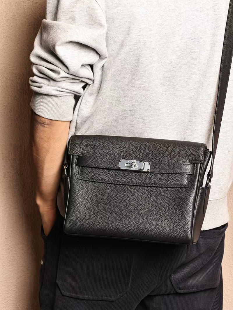 ケリー メッセンジャー メンズ HERMES ケリーメッセンジャー 黒 ブラック トゴ シルバー金具 2519459