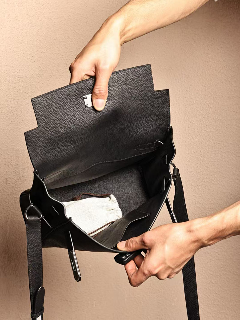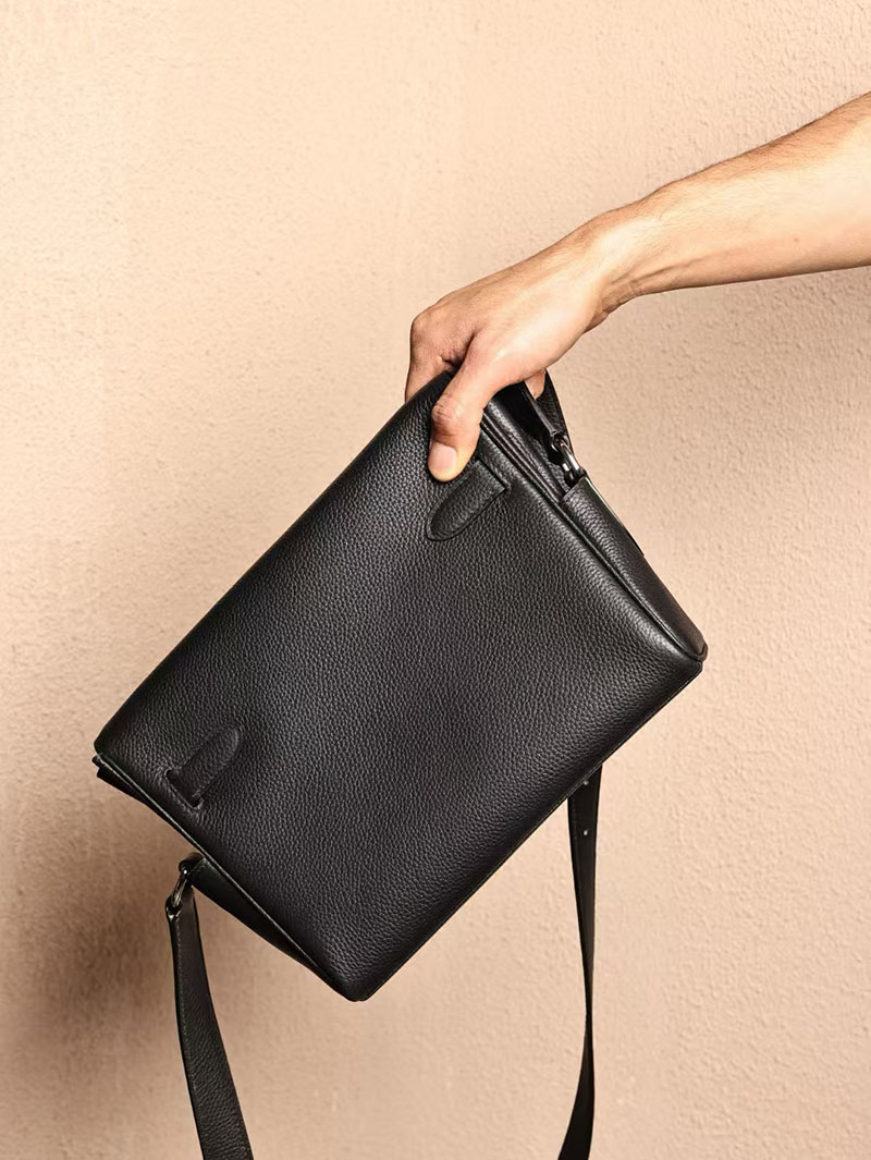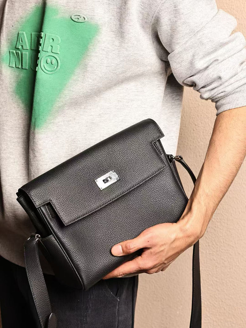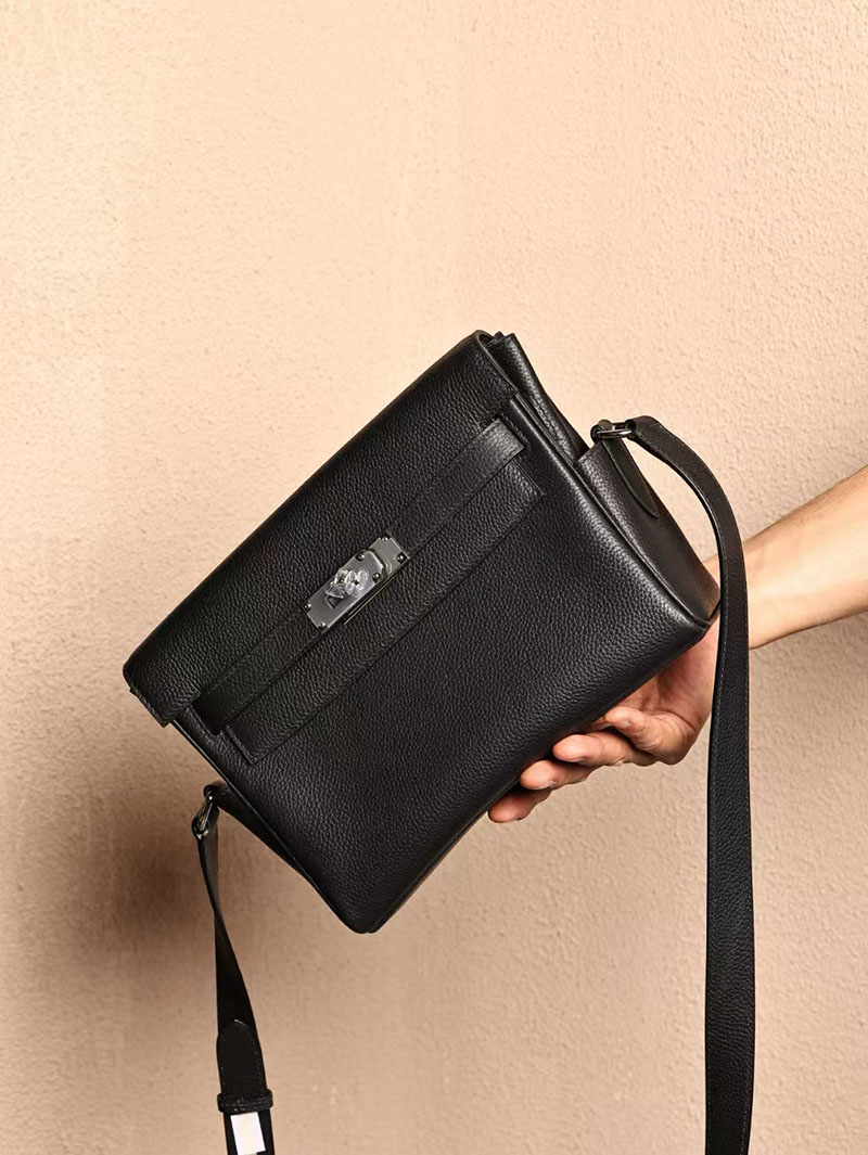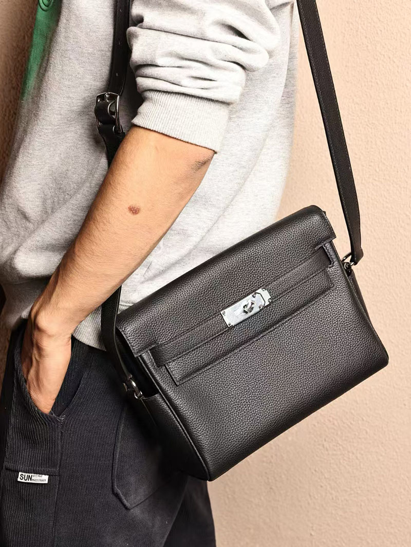 ケリー メッセンジャー メンズ HERMES ケリーメッセンジャー 黒 ブラック トゴ シルバー金具 2519459
