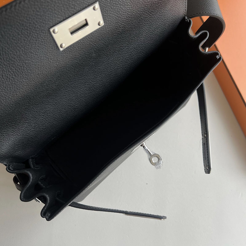 エルメス バッグ値段 HERMES ケリーメッセンジャー 黒 ブラック エバーカラー シルバー金具 2521246 ケリーメッセンジャー 定価