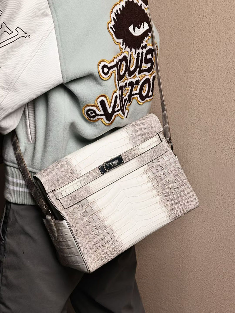 メンズ エルメス バッグ HERMES ケリーメッセンジャー ヒマラヤ クロコダイル シルバー金具 2526010 エルメス メンズバッグ ビジネス